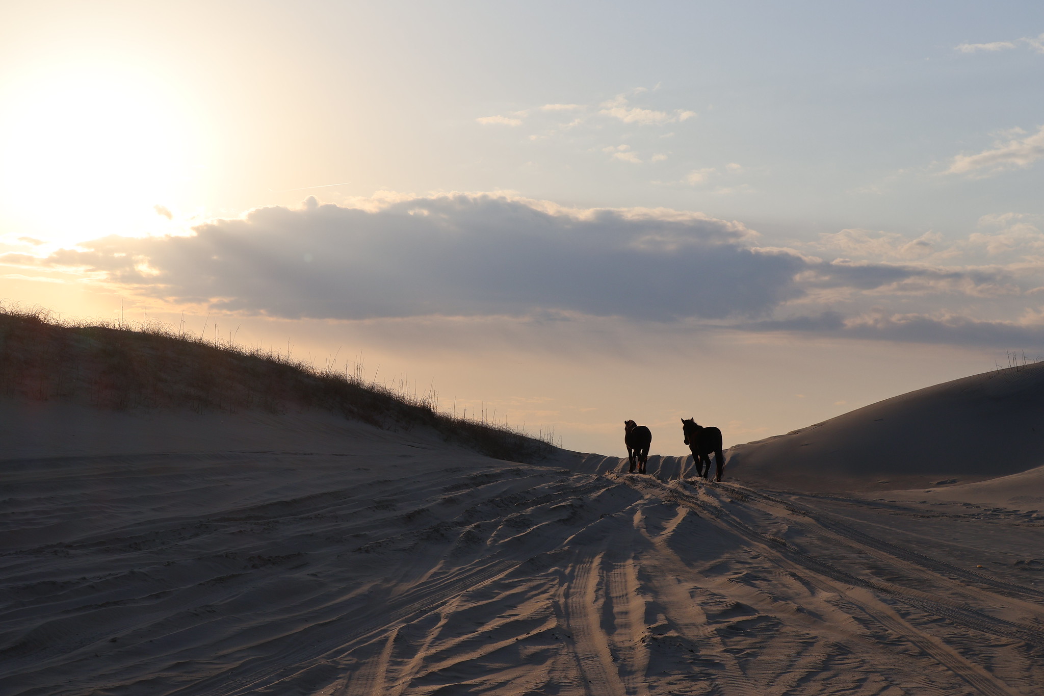 The wild horses are always on the 4x4 beaches, however, it may be easier to find them during the warmer months of the year, March through November. The horses are known to hunker down during the winter.