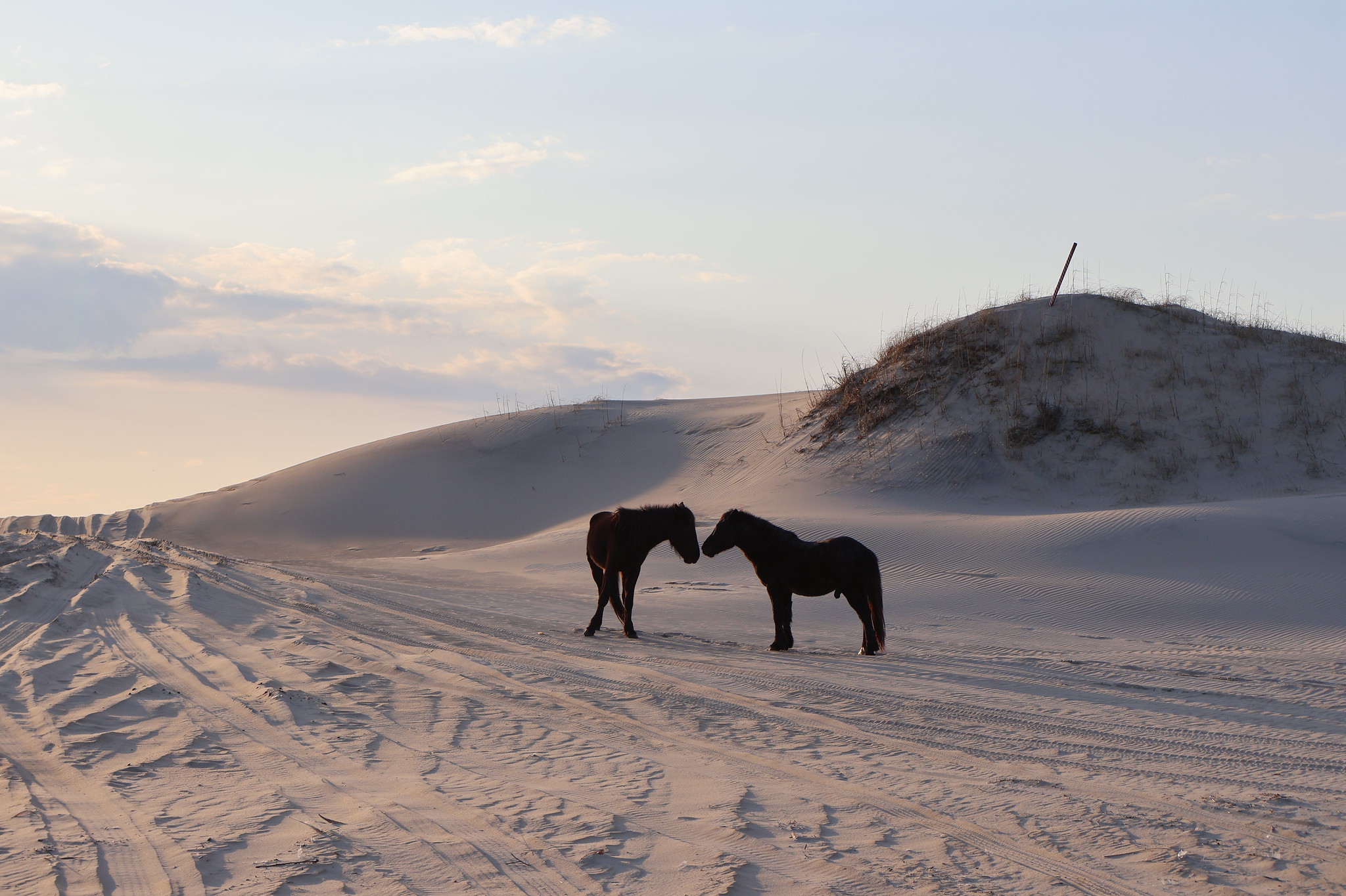 In addition to the Corolla Wild Horses, there is another herd of Spanish Mustangs in the Outer Banks on Ocracoke Island. The origin story of the Ocracoke Banker Ponies is similar to that of the Corolla Wild Horses, involving Spanish explorers and shipwrecks. The Ocracoke horses were once wild on the island, however, they have been penned and cared for by the National Park Service since 1959.