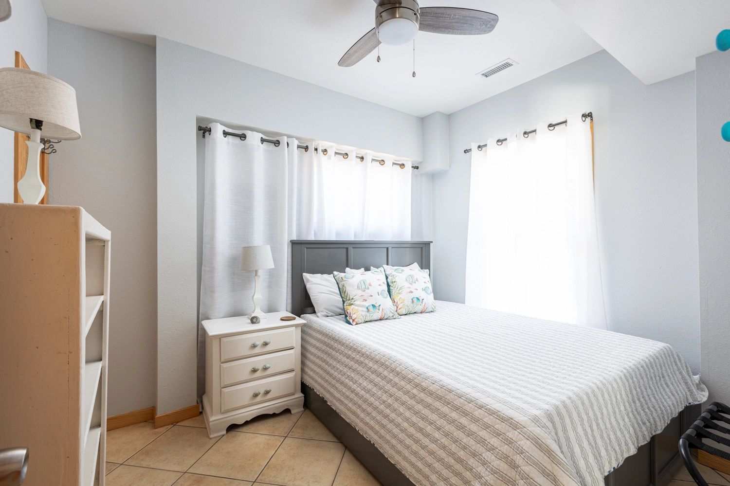Queen, Trundle, Shared bath with Room 2, Shower/tub combo