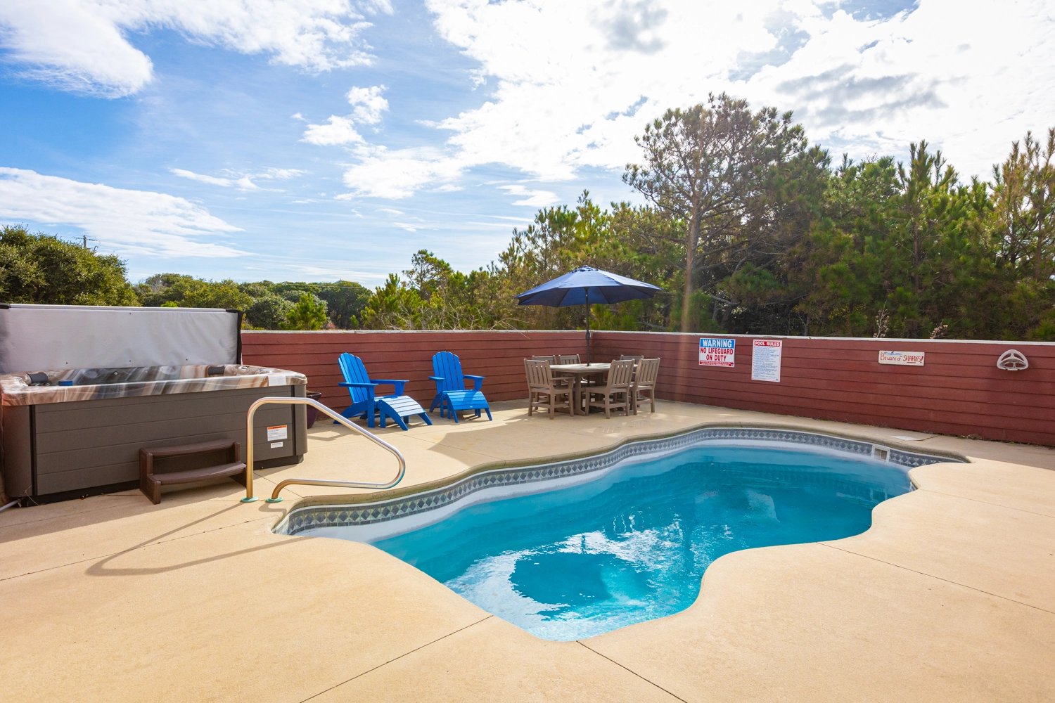 Private pool, hot tub, charcoal grill.