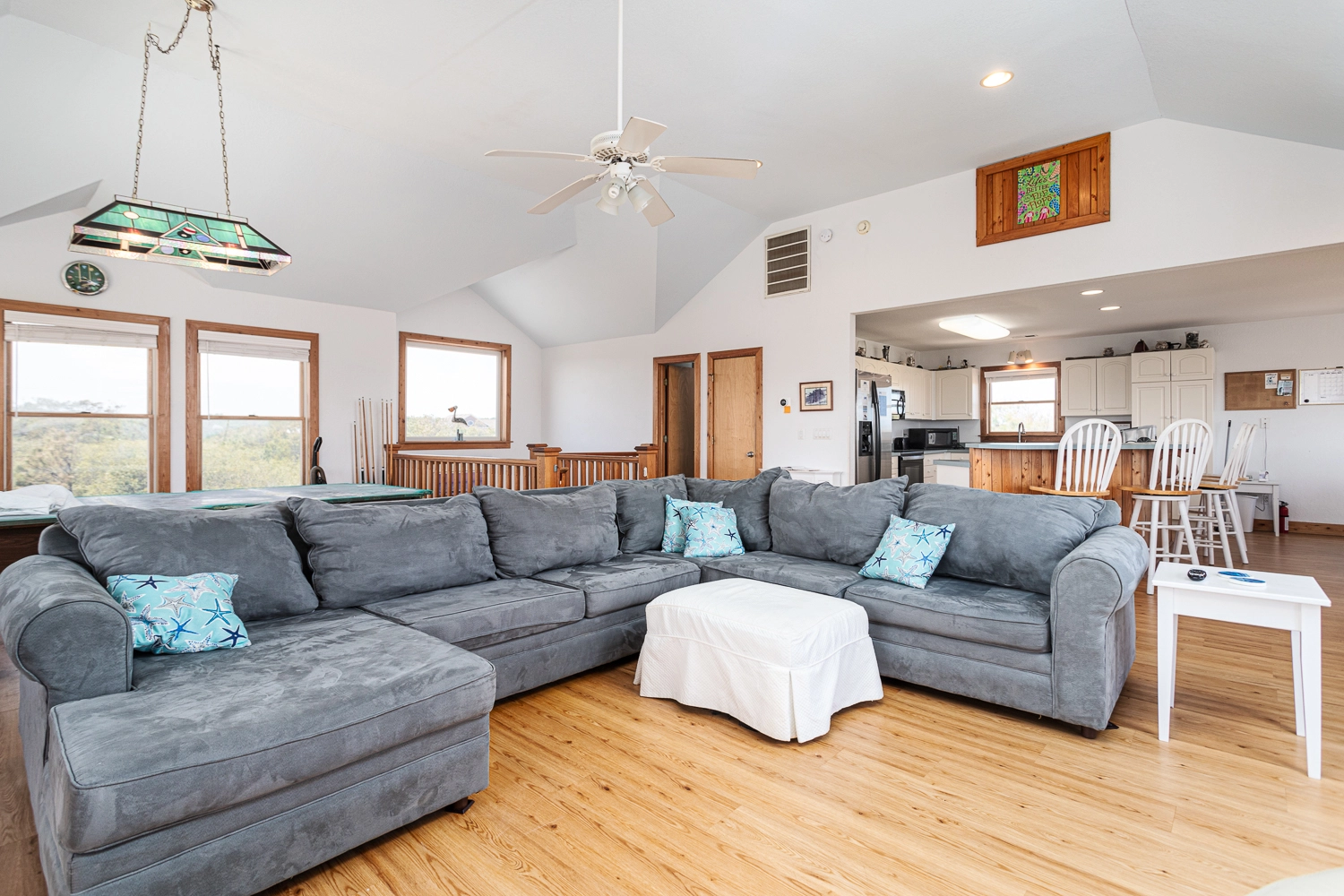 "We loved the home the second we walked in.. felt like home away from away. Being able to bring the pup was a huge plus.. views and sounds of the ocean from the 3rd porch was a big reason we loved the house.. kitchen was fully stocked with everything you need to cook. And best of all it was nestled in a quiet spot in the 4x4 section"
