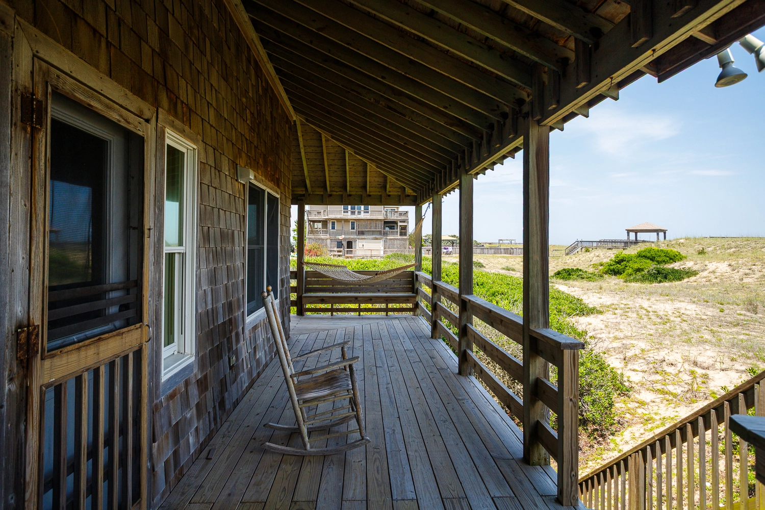 "Beyond Buxton is a wonderful old fashioned no frills beach house . The porches are the best part along with beach access"