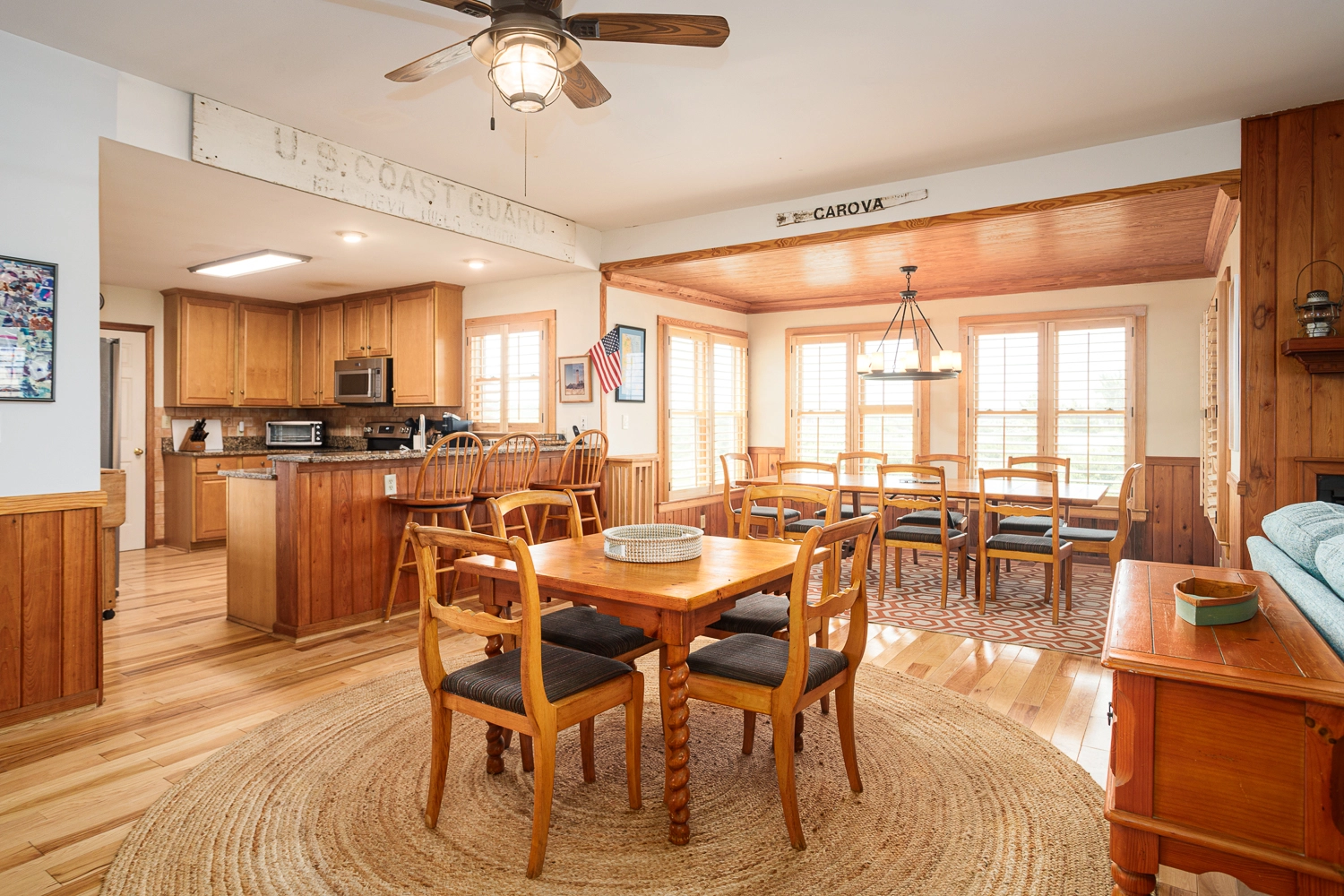 "Enjoy the Beachfront home with wonderful wrap around porch. Kitchen cabinets and drawers meet many cooking needs. Ice machine is a favorite and there is plenty of refrigerator and freezer space for three families for the week stay. Parking passes are great perk for beach parking. Recent updates and renovations of bathrooms a plus."