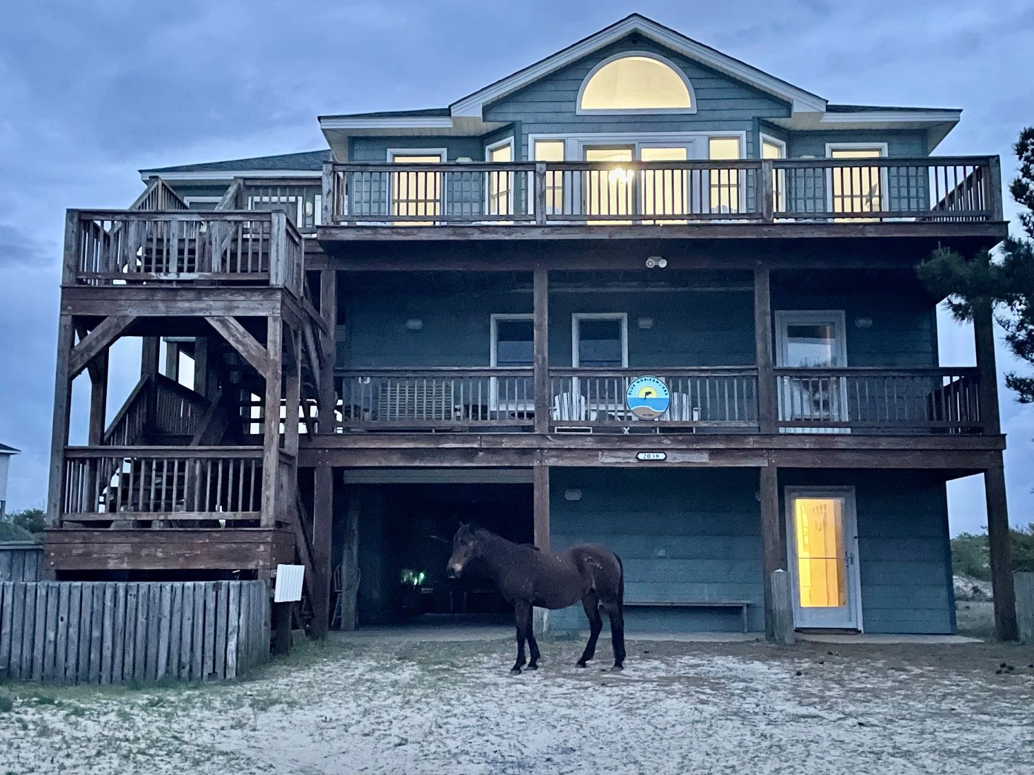 "Lovely home, easy beach access, and nice ocean sunset view from the third floor balcony. The horses really seemed to like the backyard and across the road as they visited daily. Needed a little maintenance, we called Twiddy about a broken toilet handle when we arrived and they were very quick to arrive and fix it. Got some great advice from the maintenance man that saved us a late night headache too. I would definitely recommend this home and Twiddy to others."