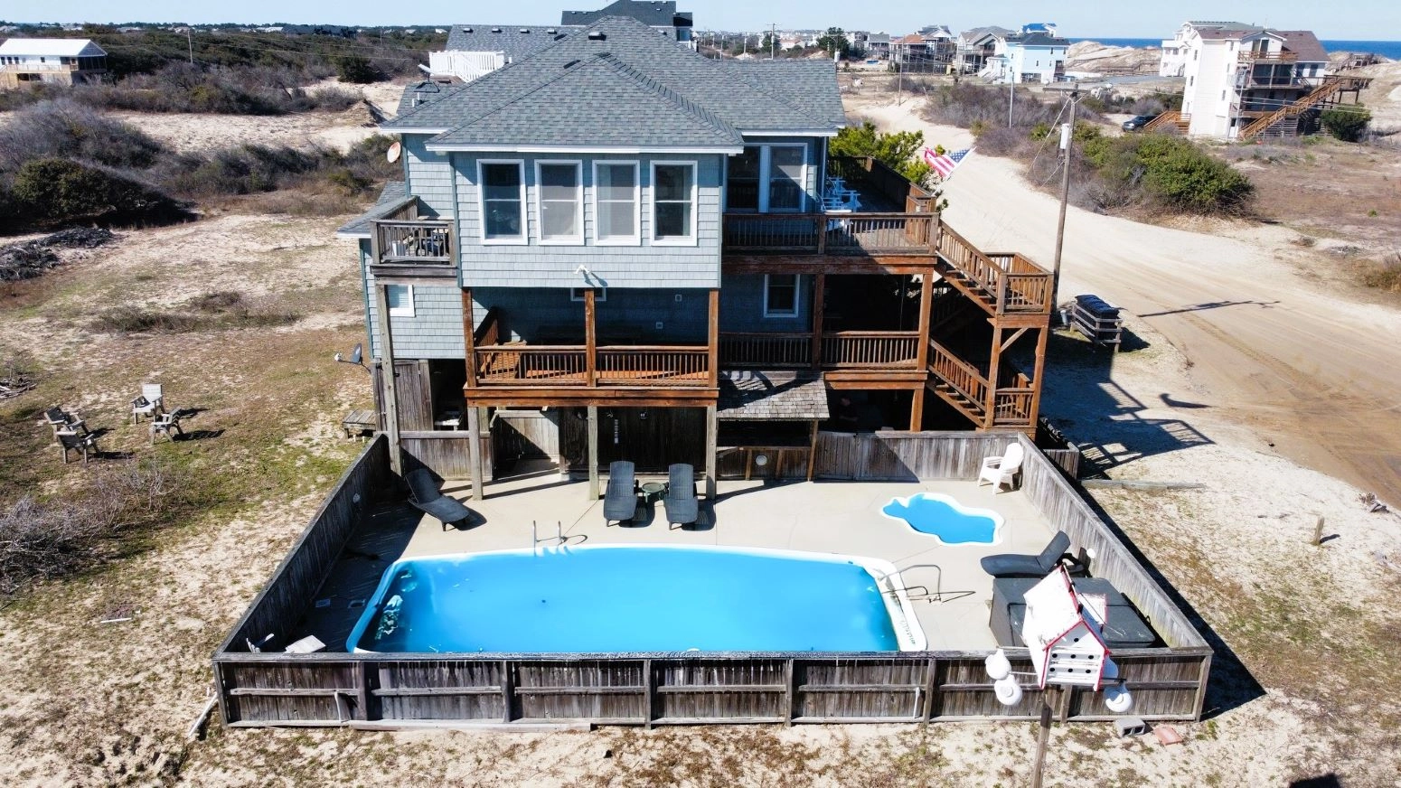 "We loved our stay at Blue Horizon OBX in July of 2025! The pool was great, the house was decent, and they allowed more than 2 dogs which was super important to us!"