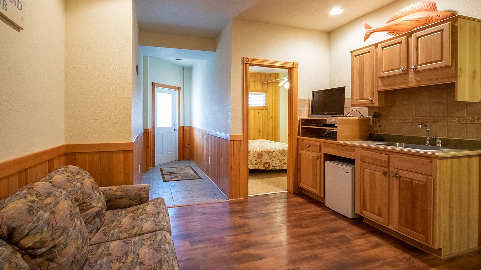 Sitting room; tiki bar and picnic area by hot tub.
