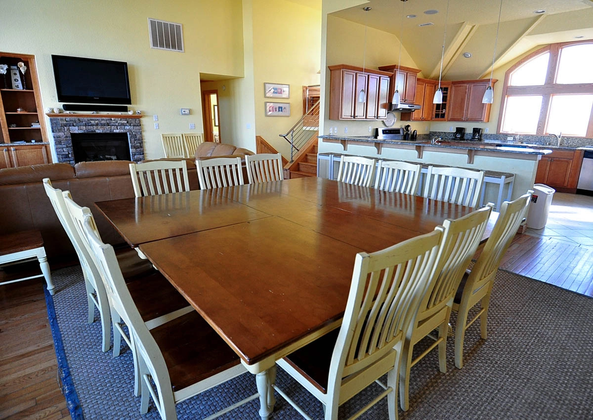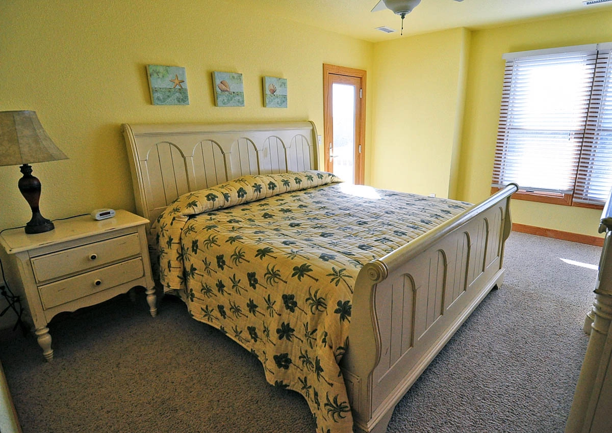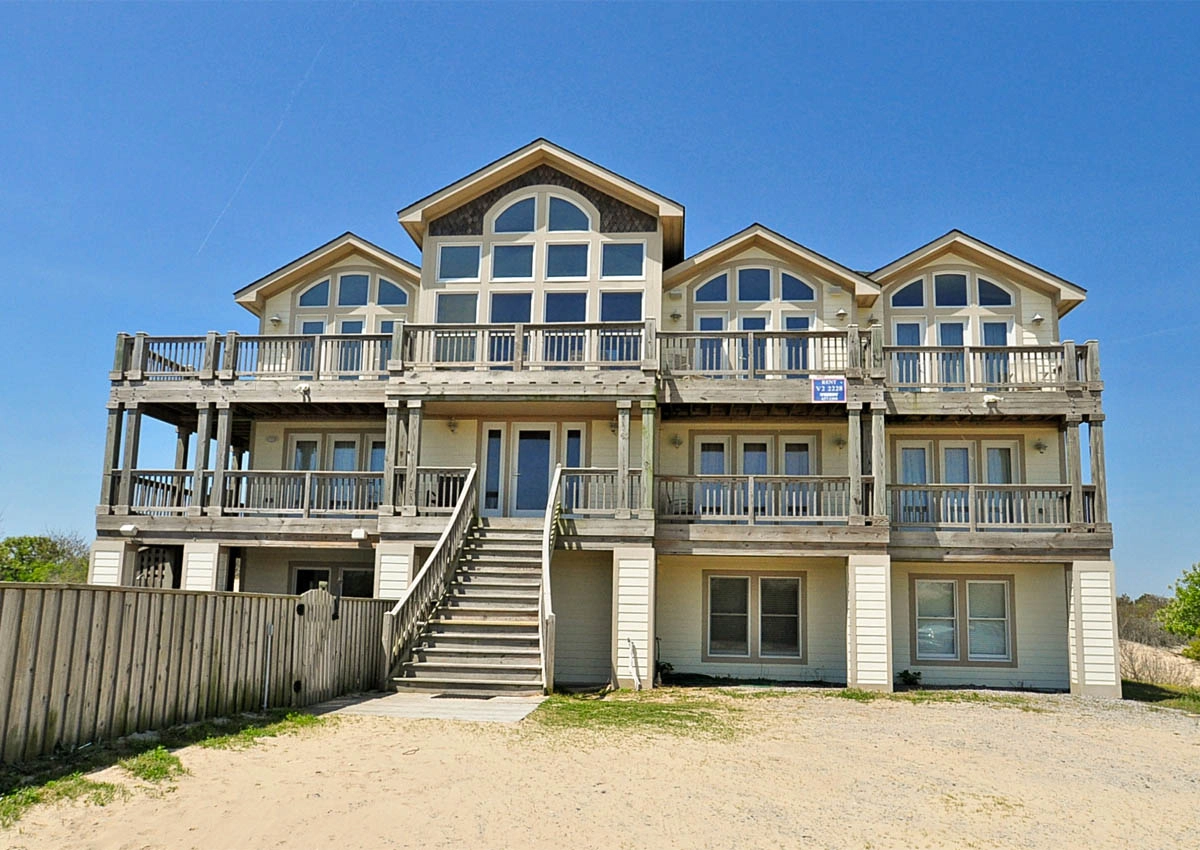 "It has 10 king bedroom and that is really nice, beds are super comfy. But house needs some kitchen updates it has hardly no kitchen cooking utensils, the few pots and pans it has are very old and everything sticks. The oven/ stove is old and takes for ever to cook anything. It has a nice small oven on the side but no racks and no pans that fit it so you can't even use it. If you have all the bedrooms full like we did your going to struggle cooking for a large group of people take your own pans , electric skillet ect cause not much are provided. The fridge / freezer down stairs has no shelf's in the freezer part so you have to just pile everything in the bottom of the freezer. Deck / pool furniture is hard to come by brings chairs . Plenty of parking and it's only a short walk or drive to the beach. The bedrooms all but one has a tv that's nice all have bathrooms with tubs but 2 nice for young kids. I would return but I wish they would update the kitchen and add some more cooking items next time I will be bringing electric skillets with me . I enjoyed the location!! Didn't want to forget all most every door knob in the house needs replaced they are either missing or fall off in your hand. We enjoyed our stay the weather and twiddy was wonderful. The lay out of the house with all the king bedroom is a great lay out house just needs a little TLC."