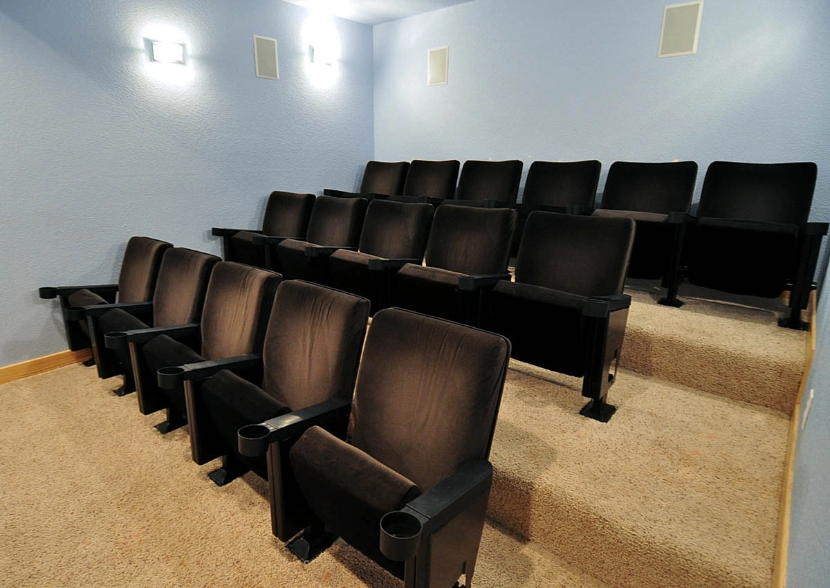 Recreation room with ping pong table top, pool table and multi-zone audio system; sports bar with full-size refrigerator; theater room with twelve leather seats; laundry; access to private pool and hot tub.