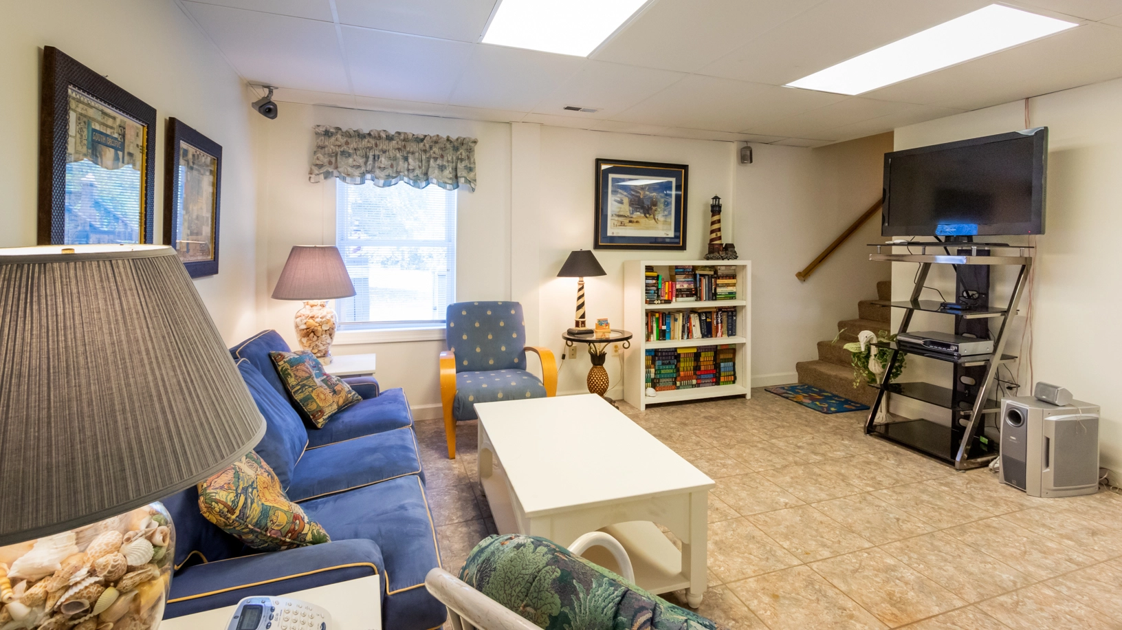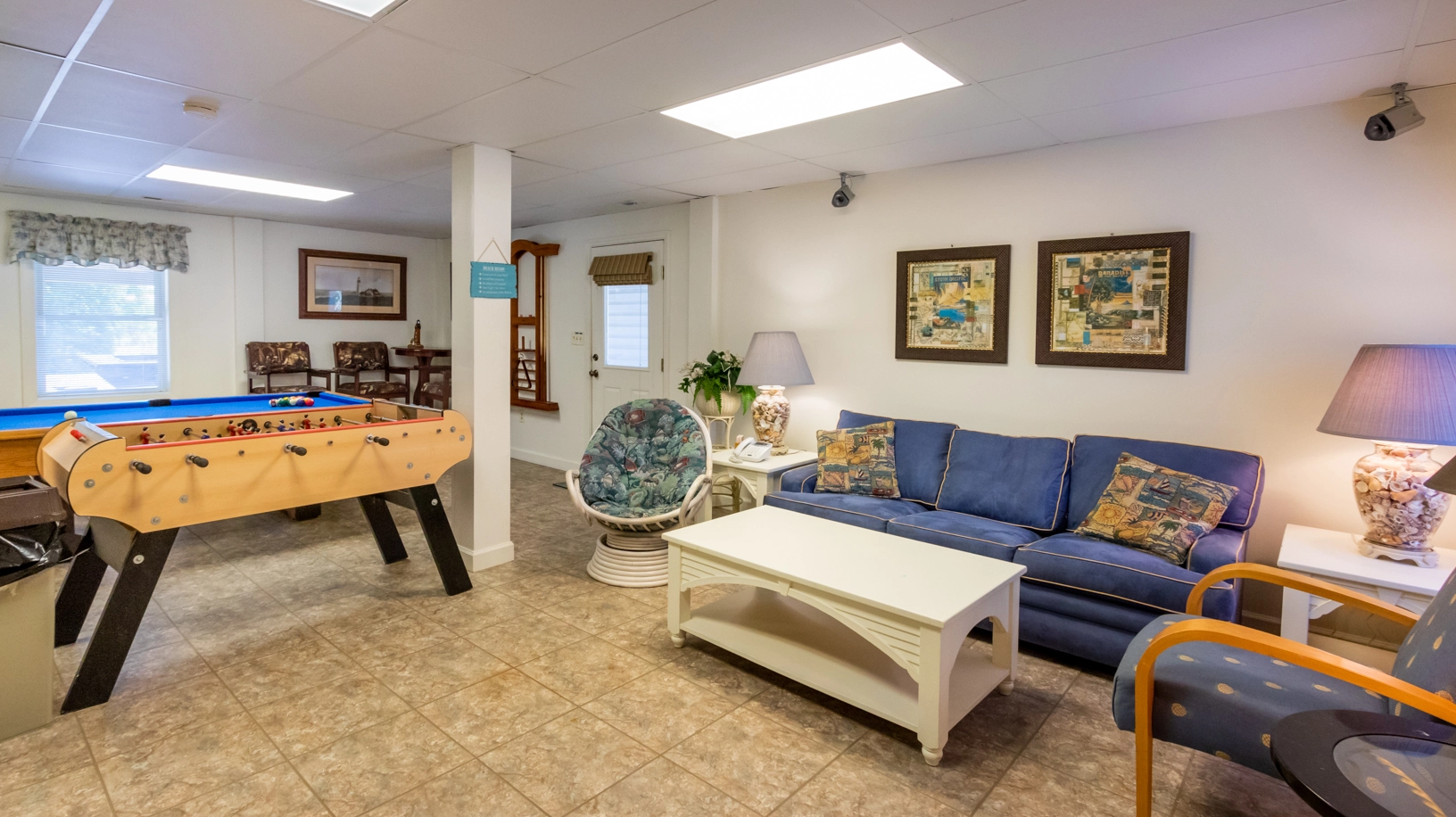 Elevator, multiple TVs, horseshoes, fish-cleaning station.