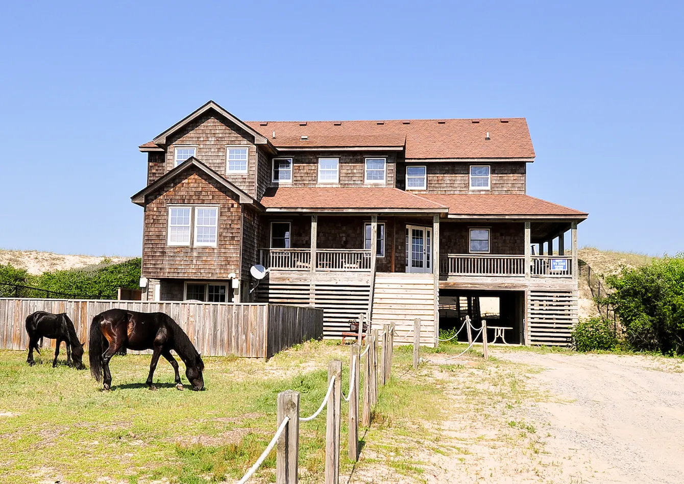 "The house is beautifully decorated and has everything we could want. There's plenty of room to gather as a family, and the decks provided us with some great views of the sunrise, the ocean, and some horses. The walkway to the beach is an added bonus!"