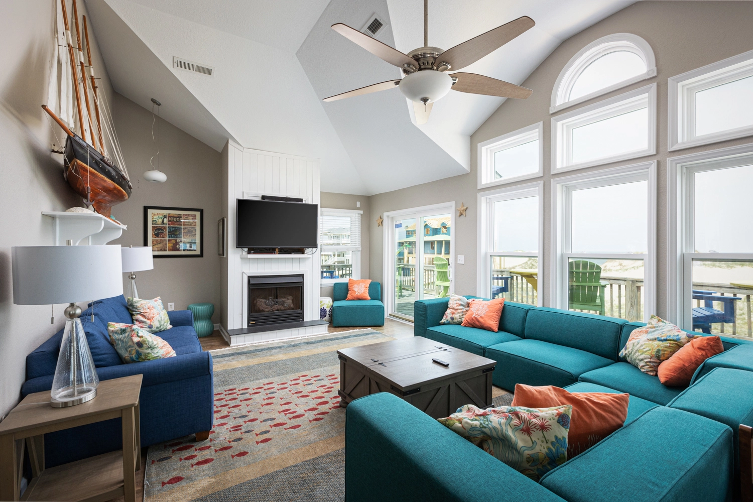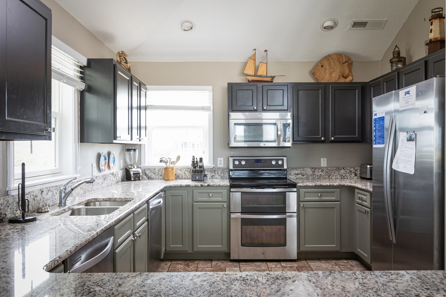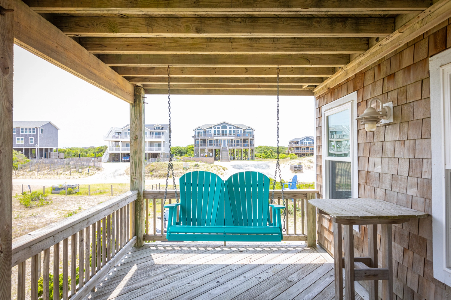 "This house was fabulous! The great room was spacious with ample seating for all, so it felt like we were together even when we we doing different things. The kitchen was well stocked with more cookware, gadgets, and utensils than we could possibly need. A regular coffee pot as well as a Keurig. Two dishwashers were awesome! Loved the extra refrigerator and ice maker on the lowest level. Each bedroom having access to its own full bathroom was amazing. The location was spectacular. We had horses on property almost every day. All the outdoor areas were well furnished allowing us to relax no matter where we were outside. Beautiful sunrise views over the ocean and the boardwalk made getting to the beach easy. Renting through Twiddy was amazing too. Couldn’t have asked for better service, the Twiddy agents were fabulous!"