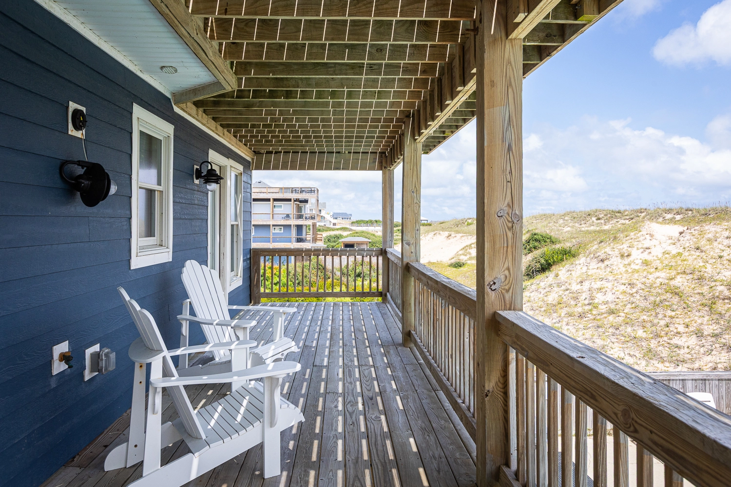 "Conch Out has a warm inviting atmosphere...I love how it is "decorated" with cute wooden signs ( in LR ) framed poster with Peter Pan saying to " come with me where dreams are born"..and family pictures..I stay there twice a year Spring and in September and have no real complaints. Tall deck chairs would be a nice addition so as to be able to look out over the ocean..rather than standing up to view those dolphins when they are out there. I highly recommend Conch Out.."