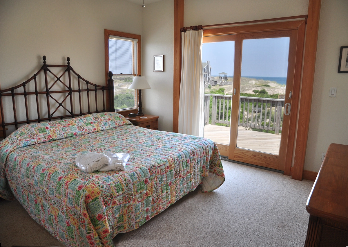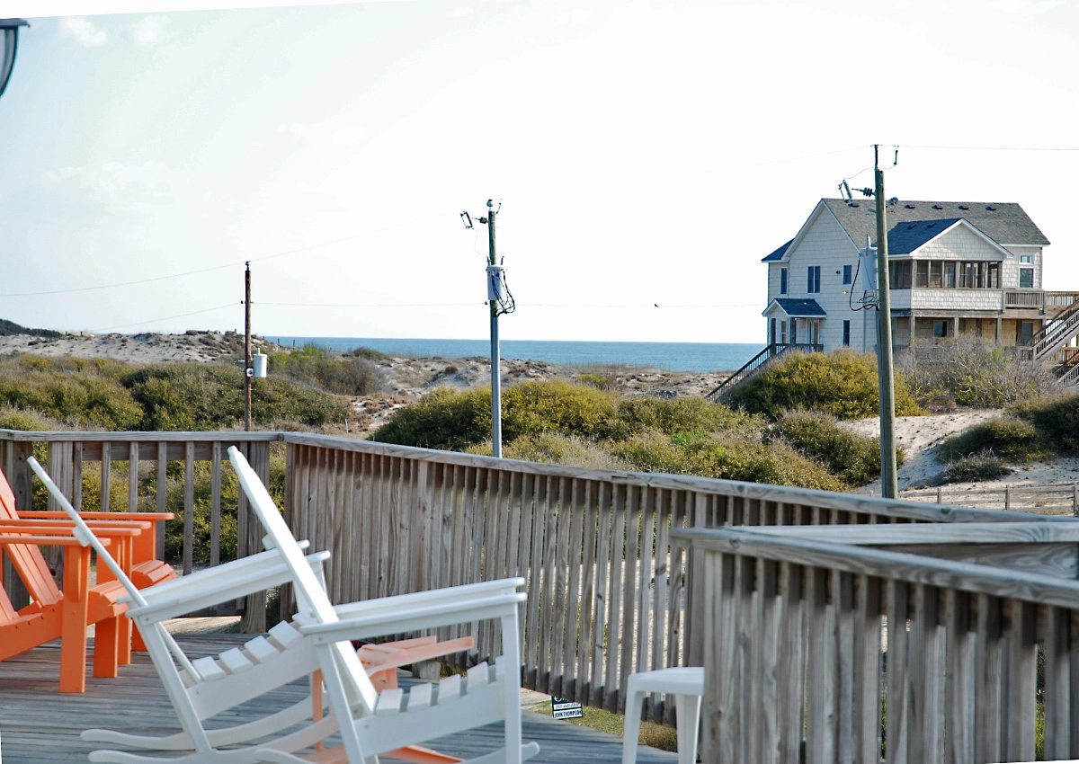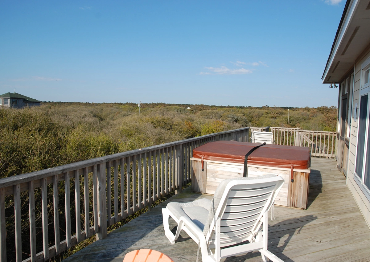 "Great views and you can hear waves crashing at night. Nice new upper level decking. 1/2 mile to trails of False Cape. Horses all around. Hot tub on 3rd level for ocean views."