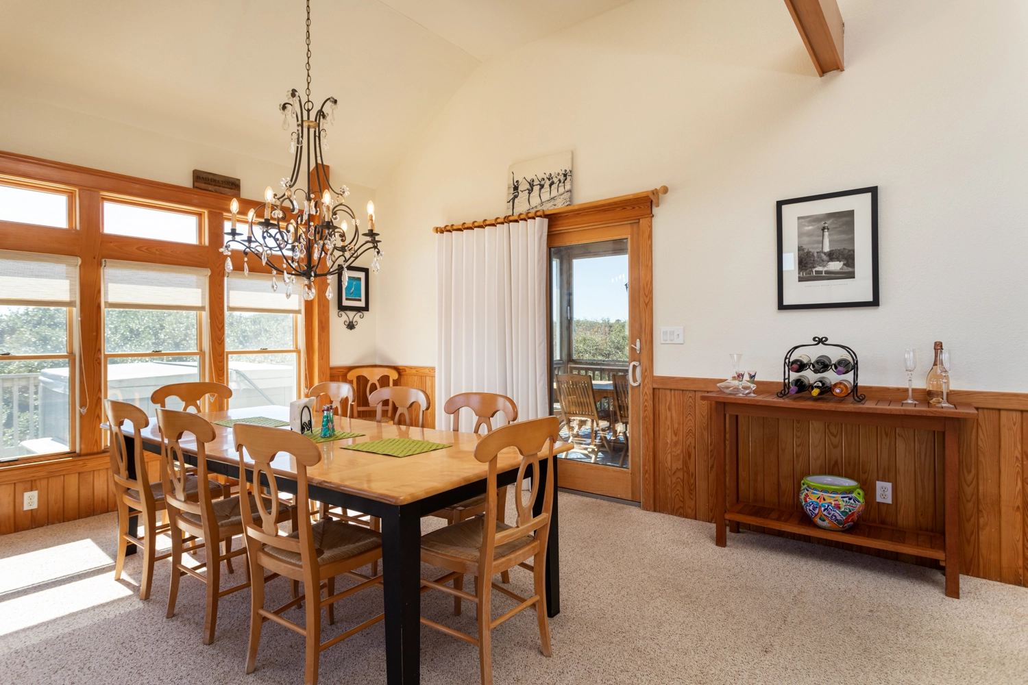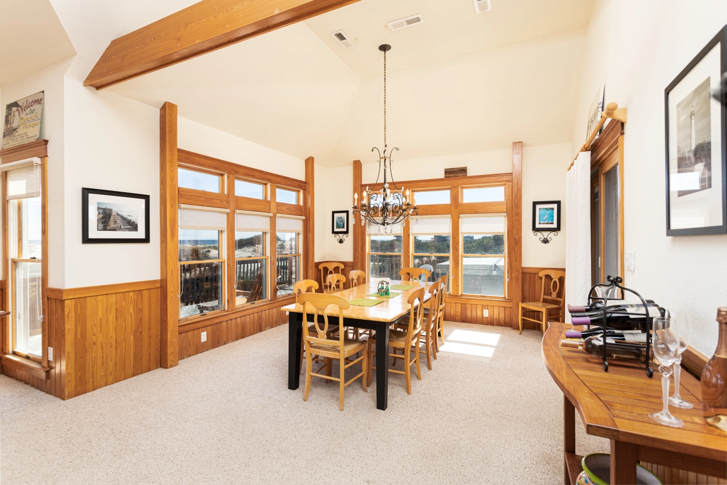 "Well equipped kitchen to meet all our meal prep needs. Lovely location close to the beach with regular visit by the wild horses. I can't tell you how much we appreciate being able to have our two dogs with us. Just a wonderful place to get away from all the craziness of the world and spend time with the kids and grandkids."