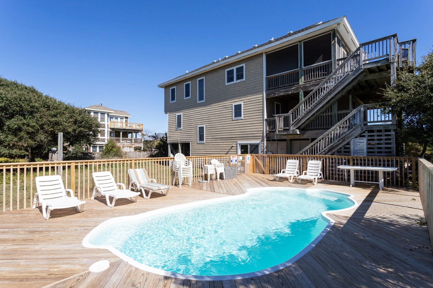 "We loved that we could enjoy a vacation with the kids/grandkids as well as bring our two dogs with us. The house provided plenty of bedrooms/bathrooms to accommodate the entire family. The grandkids loved being able to play at the beach and then return to play some more in the pool. The extra fridge on the ground floor was definitely helpful in providing space for everyone to keep their food cool. Thank you for the wonderful memories!"