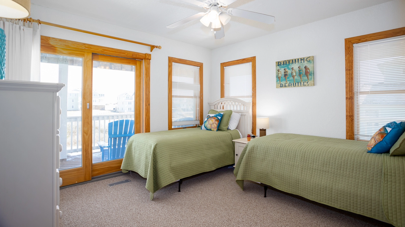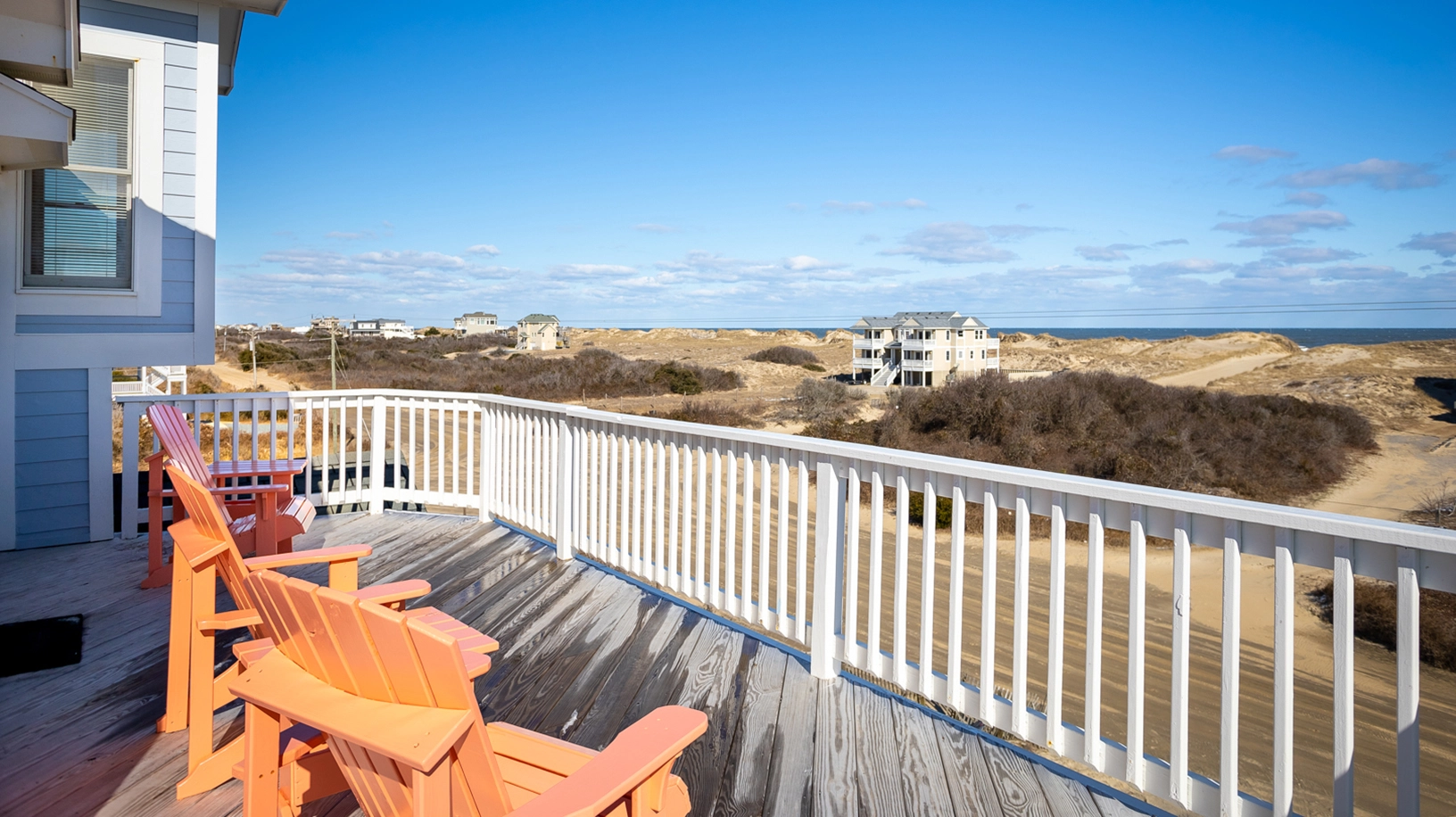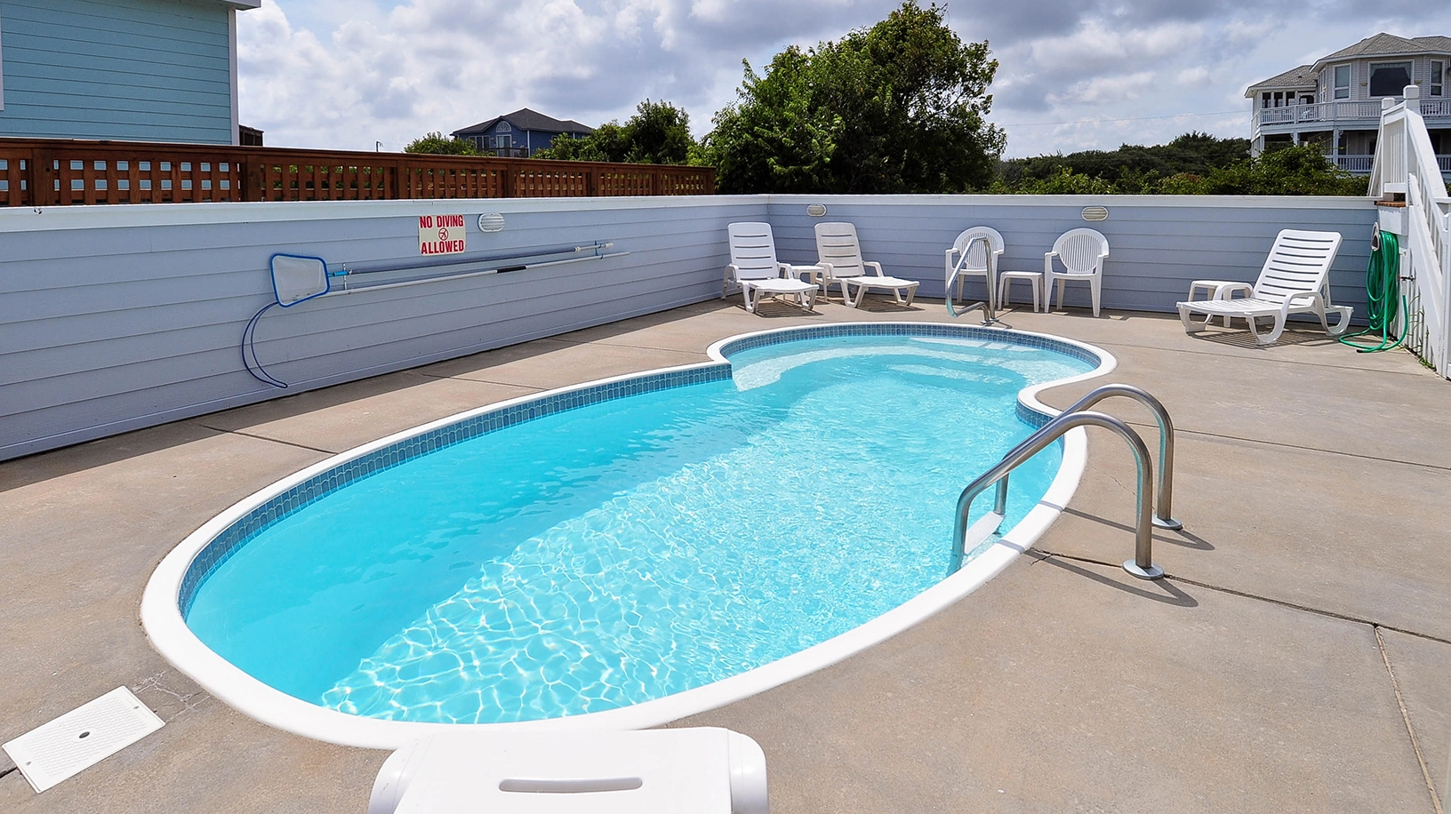 "This is a PERFECT location to the beach! It was great to have the truck with permit and use it to unload all the beach gear back and forth and easy enough to have the kids walk! The house was great! Pool is a little small if you are trying to have everyone in the pool at the same time but perfect for three adults! Kids loved the location from the tub to the pool! Saw horses a bunch of times and the porchview of the ocean was awesome! Ice maker did not work but we didn’t report it. They had a nice selection of kitchenware. The fridge downstairs was a little small but just bring coolers. The rooms were perfect except the bottom room has huge spiders in the bathroom. Bring hairspray to get rid of them! The toilet in the kids bathroom did not flush properly so we called twiddy and they came that day to fix it. It still was causing problems so that toilet should probably get replaced! The kitchen table was huge and great for all of us! This location is perfect because there were no neighbors and it was just us! We will definitely stay here again! Location is the best if you can’t get oceanfront! Twiddy was amazing! They are so responsive via text! Thank you for a great vacay!"