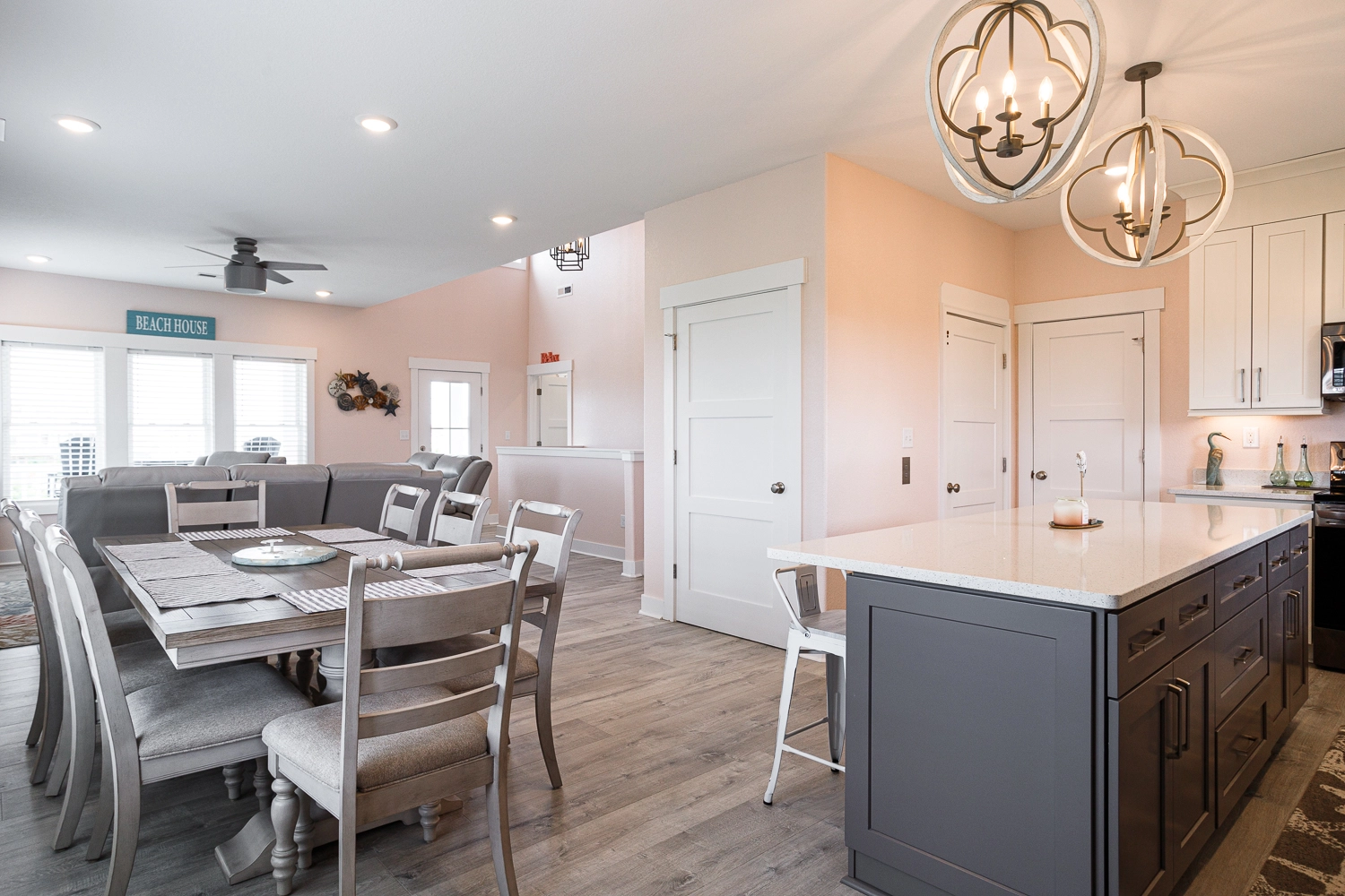 Great room; kitchen; dining area; laundry.