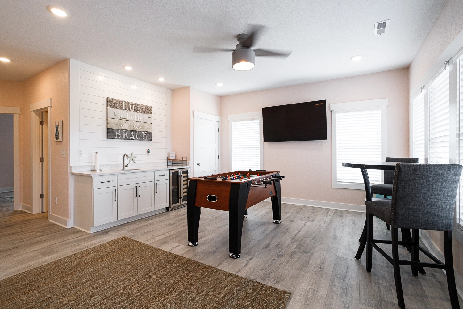 Rec room (Queen Futon) with foosball and wet bar with wine cooler.