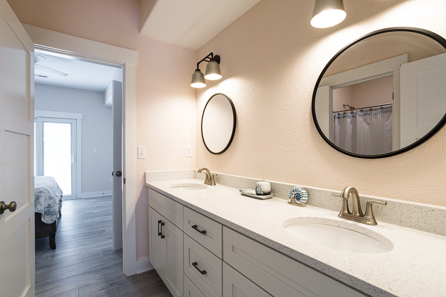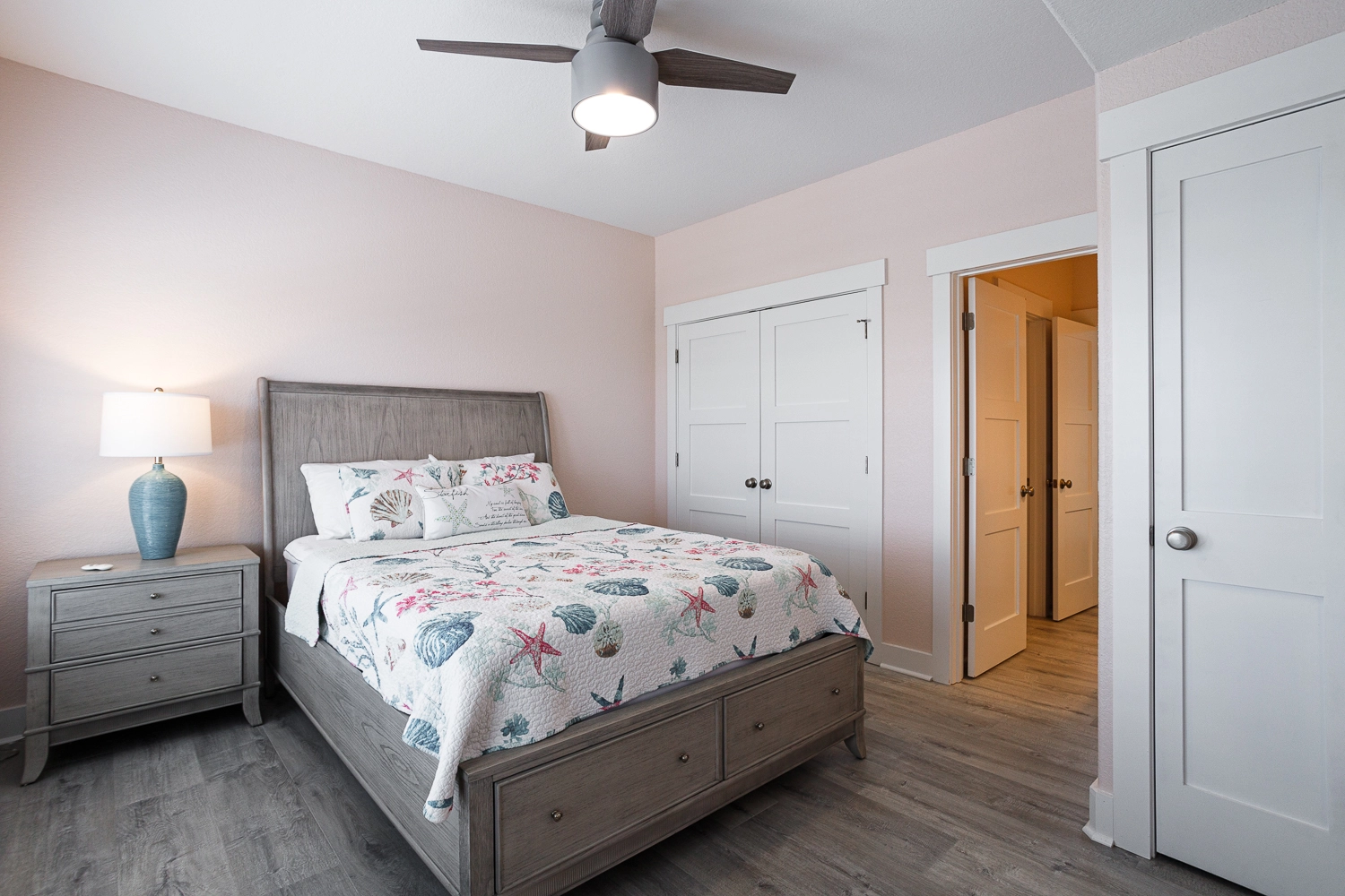 Queen, Shared bath with Room 1, Standing shower, Deck access
