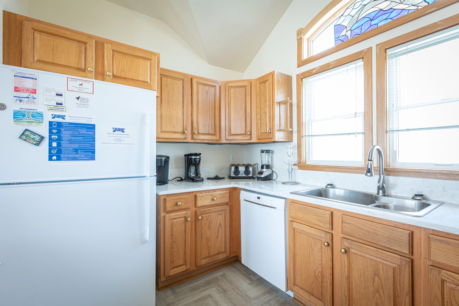 "The kitchen has everything you could possibly need. There was a big crockpot, a large electric skillet, two blenders, two regular coffee makers, two pod coffee makers, a big waffle maker, and lots of large pots and pans, and enough dishes to feed an army. The owners care about this house and it shows. This was our third Twiddy house/stay and it was by far the best taken care of house and my favorite thus far."