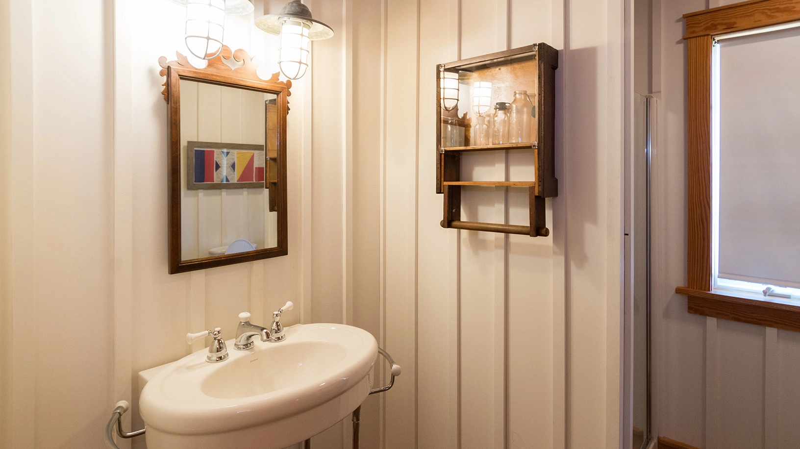 Oceanside, Queen, Semi-private "boat house" bath, Standing shower, Deck access