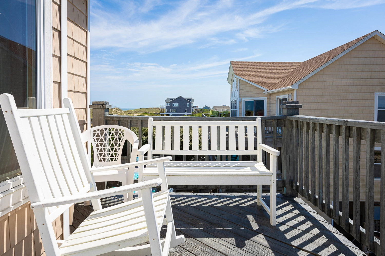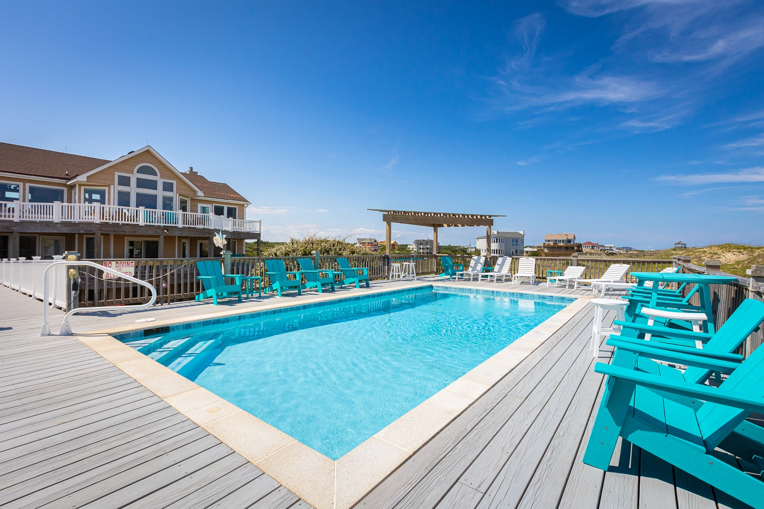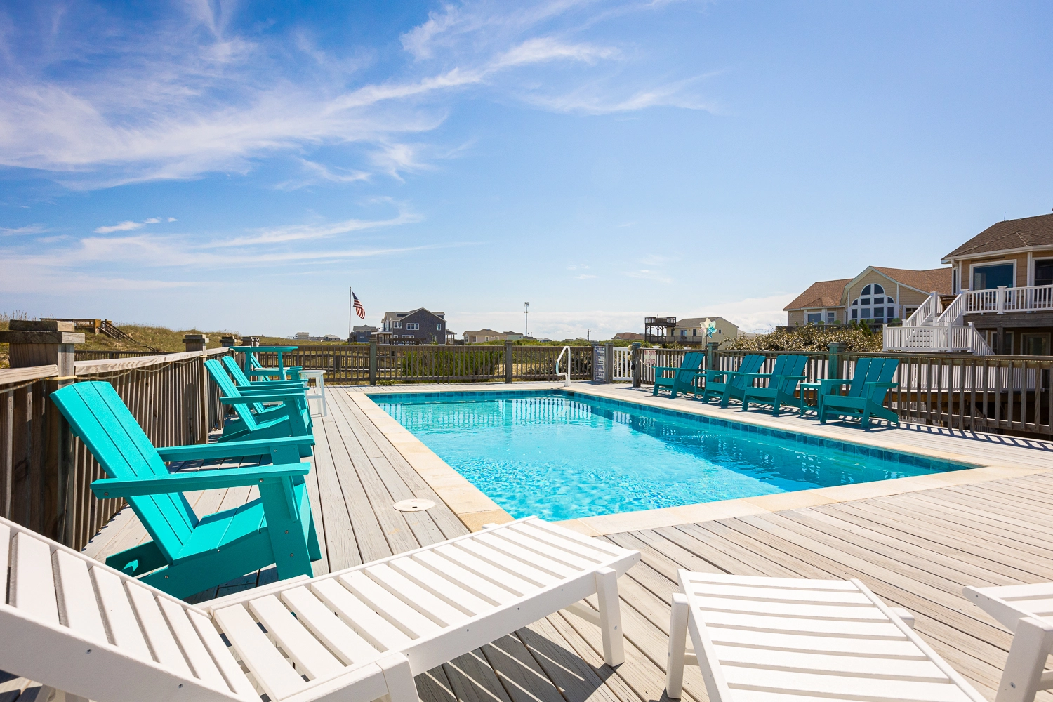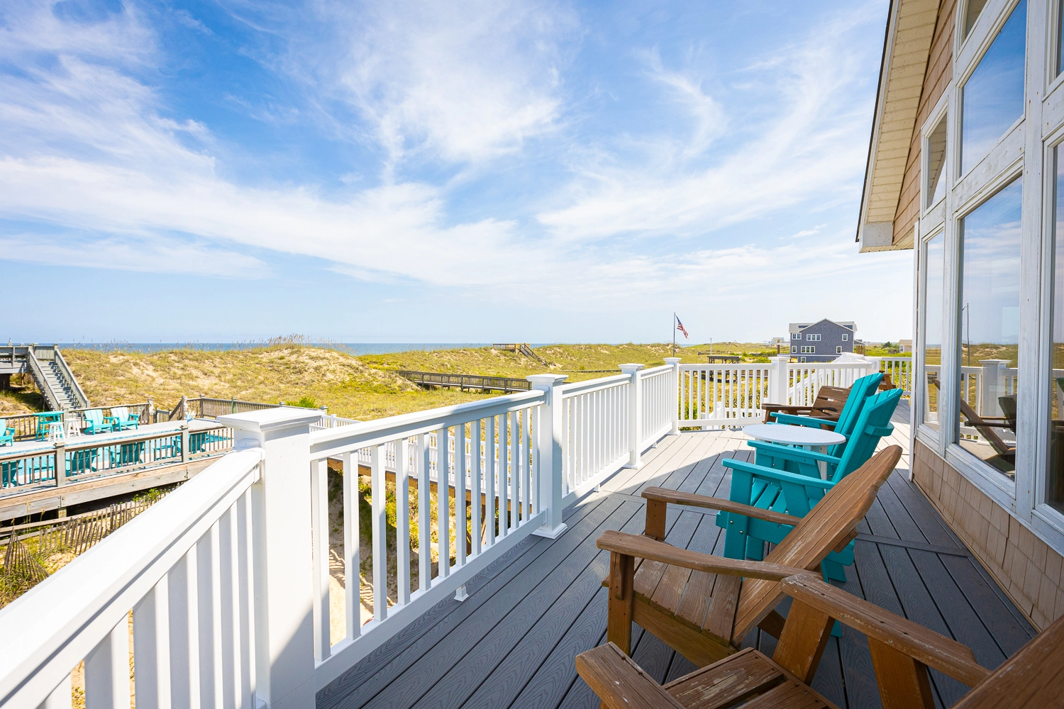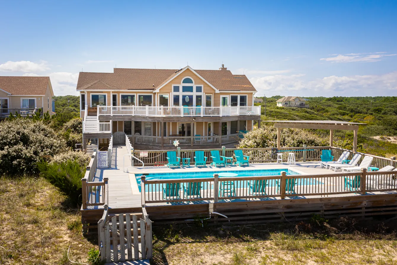 "High Dune is beautiful! Feels like home away from home. Loved the kitchen with all the necessary equipment to prepare meals everyday. The living room furniture is super comfy and accommodates a crowd. Loved the ocean views! Love the deck off the kitchen facing the sound and it’s beautiful sunsets. The pool table and foosball table were great fun for rainy days. We had the pool heated for the week and greatly enjoyed it."