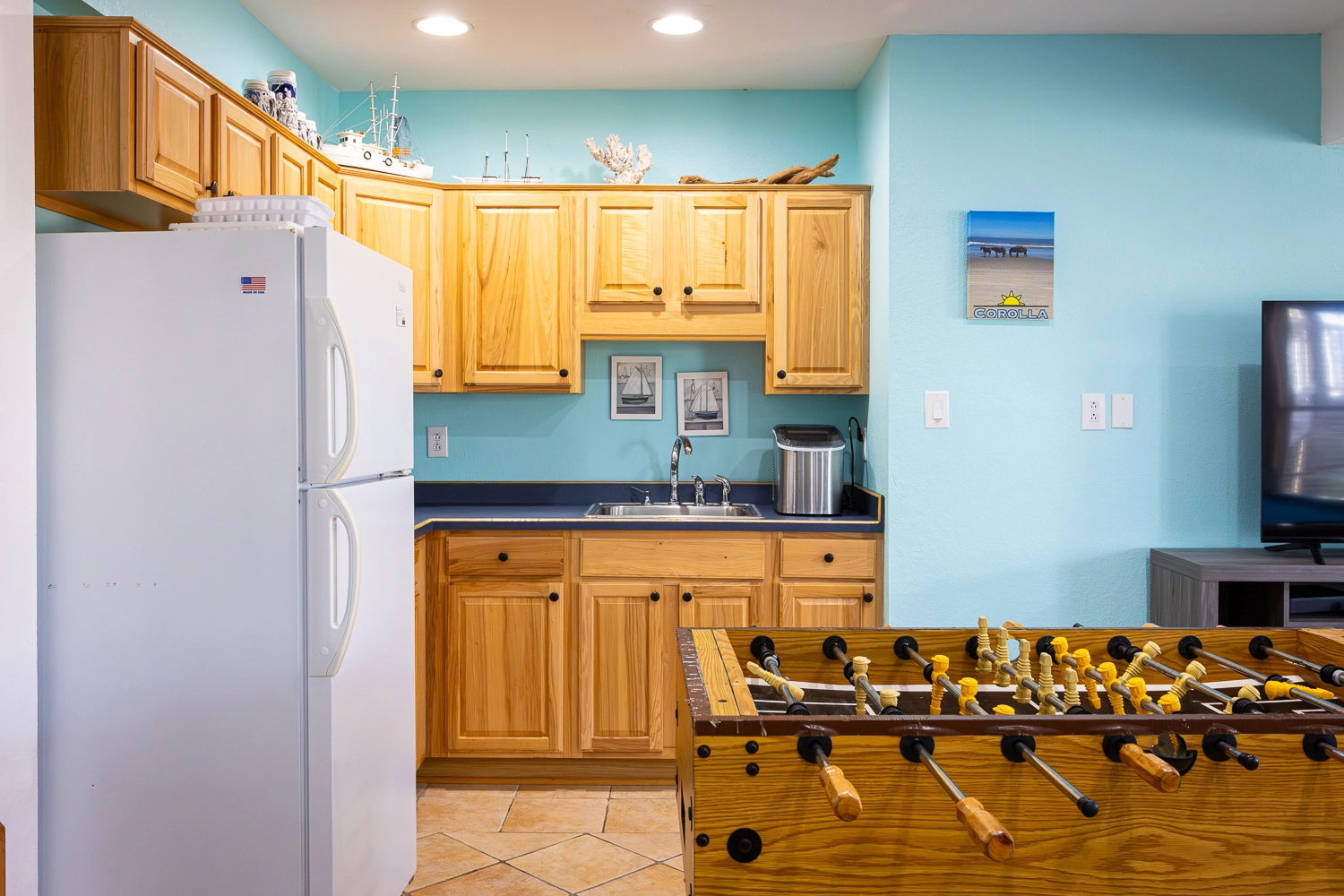 Multiple TVs/DVDs, two surround sound systems, two wine coolers, a fridge in the garage.