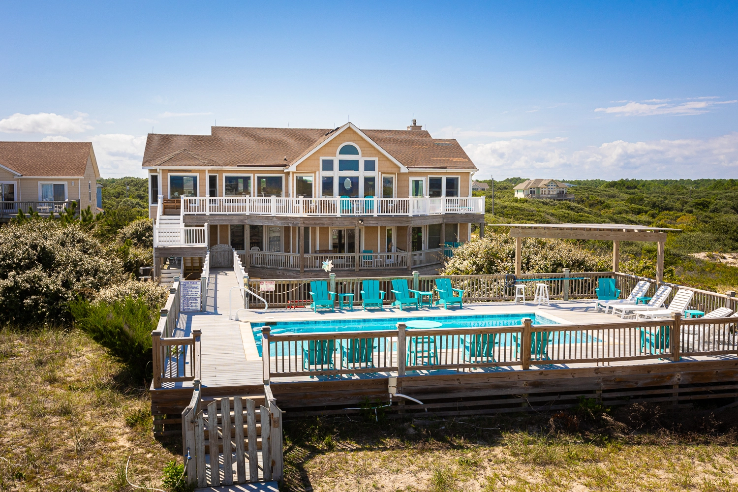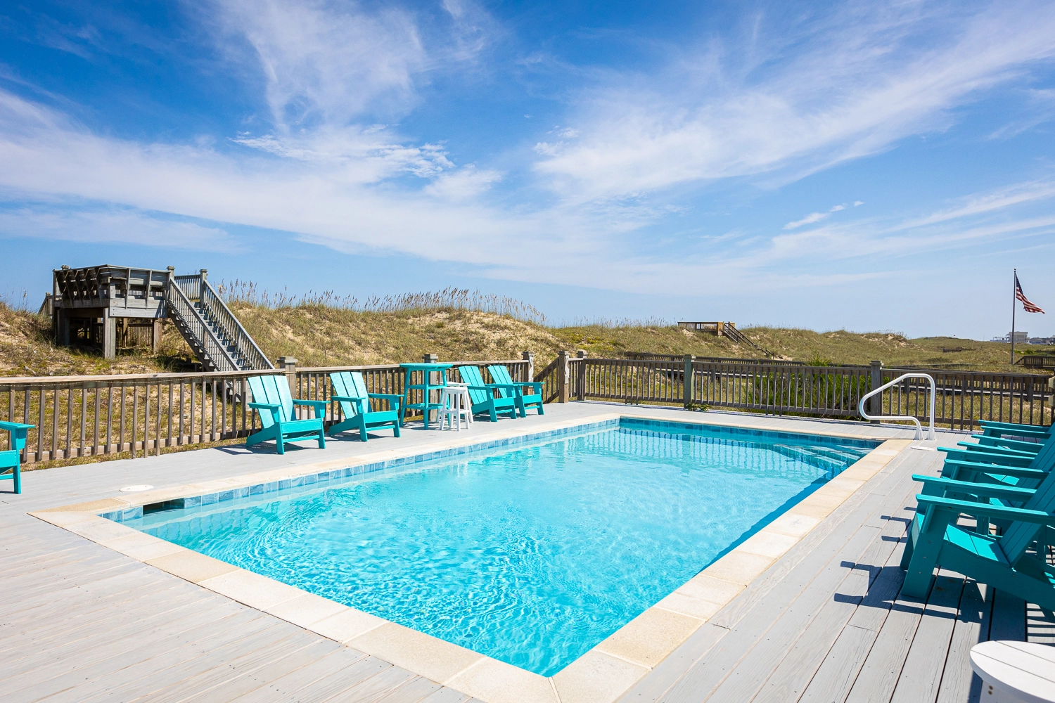 "This was the second year at High Dune for our family of 17 and we like it so much we have booked it again for next year. The location is great and we enjoy the visits by the horses, watching the dolphins in the ocean and the ability to walk out the back door and either jump into the pool or head over the dune to the beach. The house is furnished well and the layout has met our bedroom and bathroom requirements. We are already looking ahead to our Vacation 2023 at High Dune!"