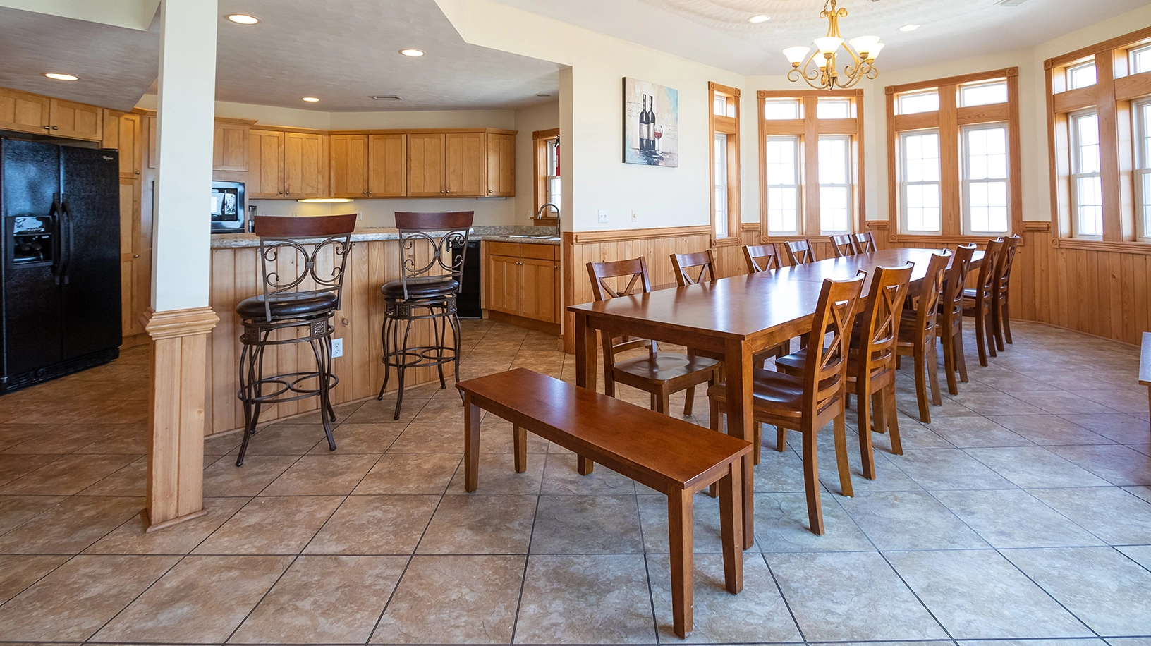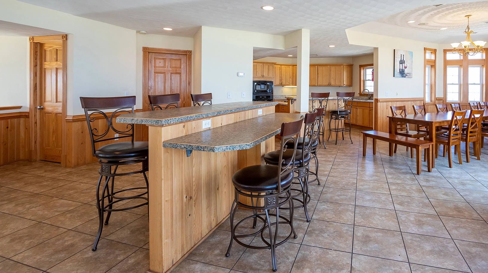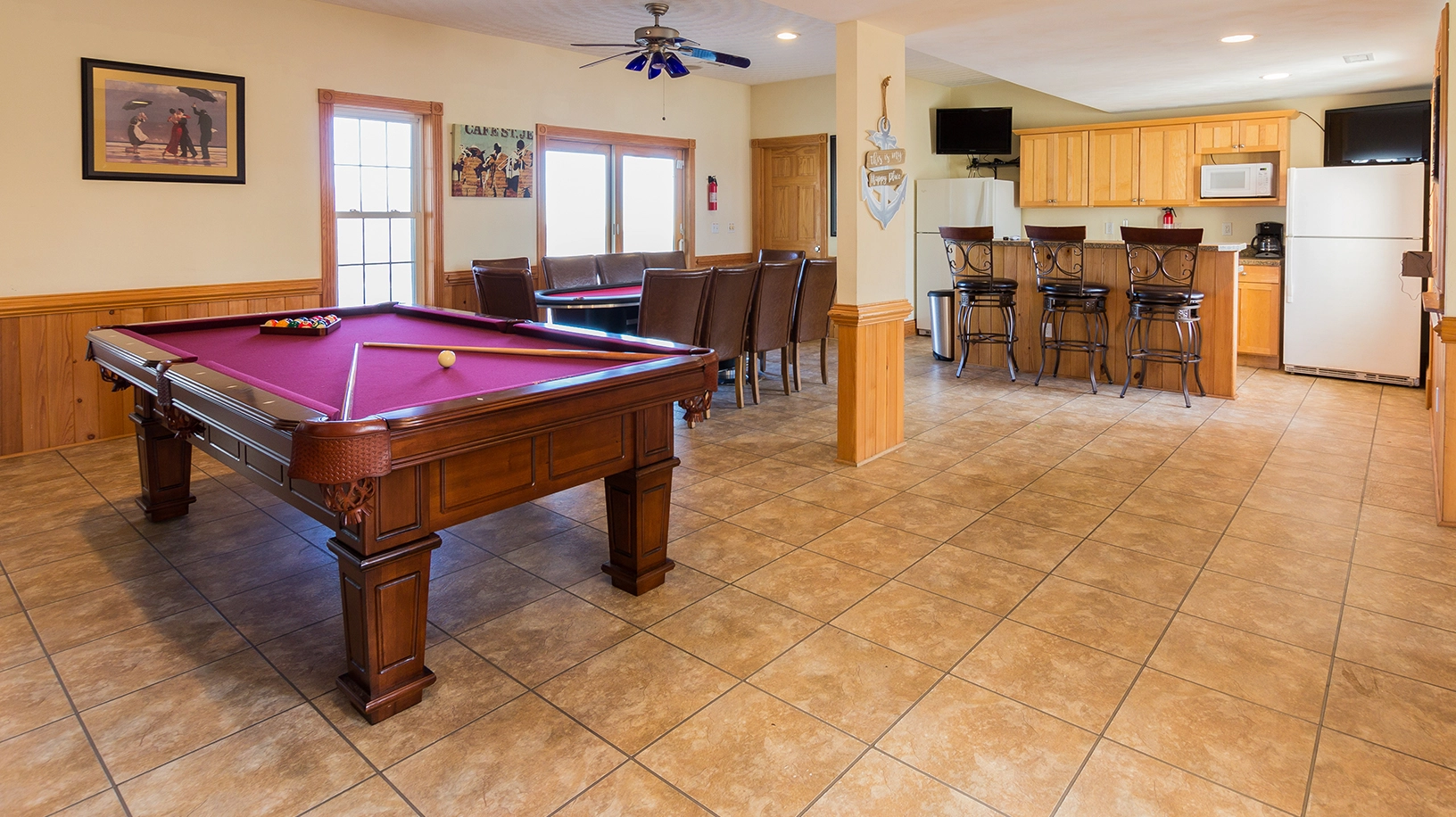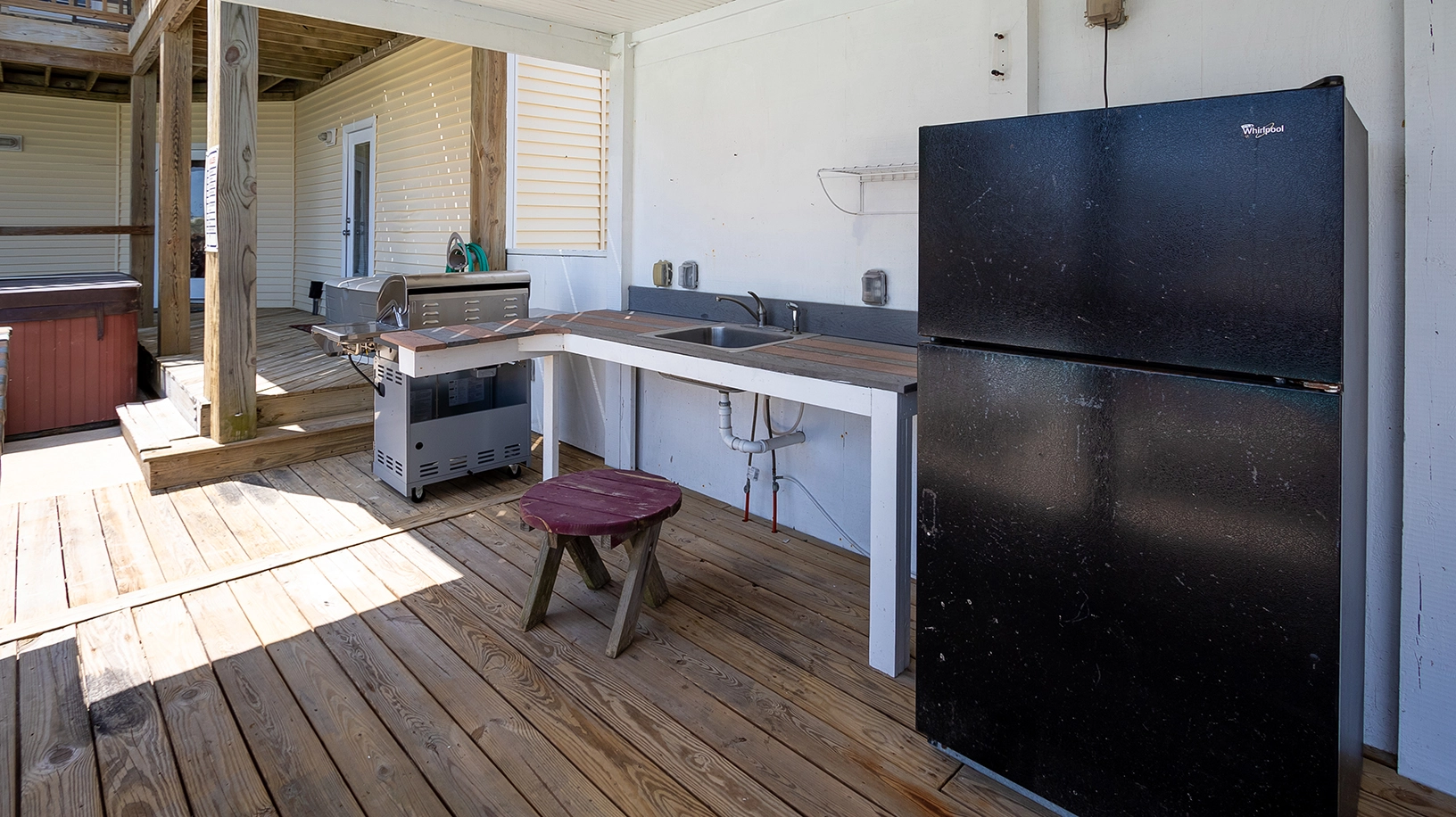 "This house has the layout we were looking for and so many nice amenities. We wanted a house on the 4X4 beaches with a nice pool/outdoor hangout area, open concept hangout area for the group, at least 3 fridges, a decent sized kitchen, is pet friendly, and has a hangout/bar area for the nighttime. This place met and exceeded our expectations! We used the 3rd floor area as our main hangout area which surprised me (thought we'd be on the 1st floor level more). The open layout had a nice flow so we could have some people playing games or doing puzzles at the large dining table, pulling up a chair to the center island to talk and enjoy beverages and have people sitting on the couches and chairs and watching the tv or playing a game at the coffee table. The 1st floor level had a great game and bar area and we all enjoyed the outside area with the covered deck and picnic tables to sit at, the covered wet bar/grill area, and, of course, the hot tub and pool. We could even enjoy the outside area at night - last place we were at was 3 houses back from the ocean so there was a lot more bugs. I wish the kitchen had one more oven, but we made do. The double dishwashers came in clutch for large group dinners and keeping the kitchen clean. The stovetop is electric and works very well and the kitchen was mostly well stocked. We loved the large, long dining table. We could get almost the whole group there plus have a few people at the kitchen island areas for group dinners. The house has a full house sound system, but we could only figure out how to work the first floor and outdoor pool deck area. Would love to figure out the 2nd and 3rd floors for full sound! The walkway to the beach was so nice and made it to easy for the group to pivot back and forth from the beach to the house/pool."