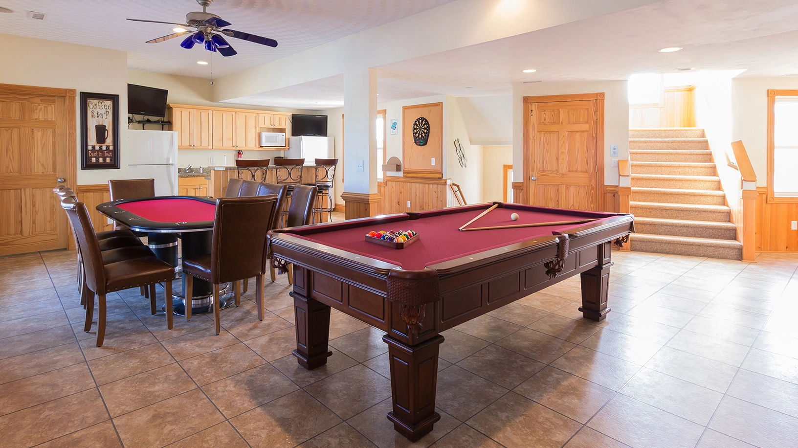 Private pool, hot tub, elevator, pool table and basketball goal.