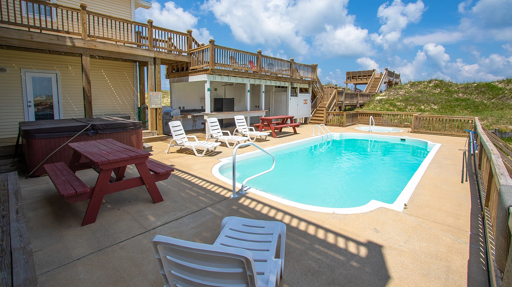 "Just Dune It was the perfect spacious size for our family! We had so much fun hanging out on the various decks and pool side. The walk out to the beach made carrying our things to the beach so easy. The kitchen was well stocked with tons of pots, frying pans, dishes, cups, mixing bowls and silverware. We have made so many memories in your home!"