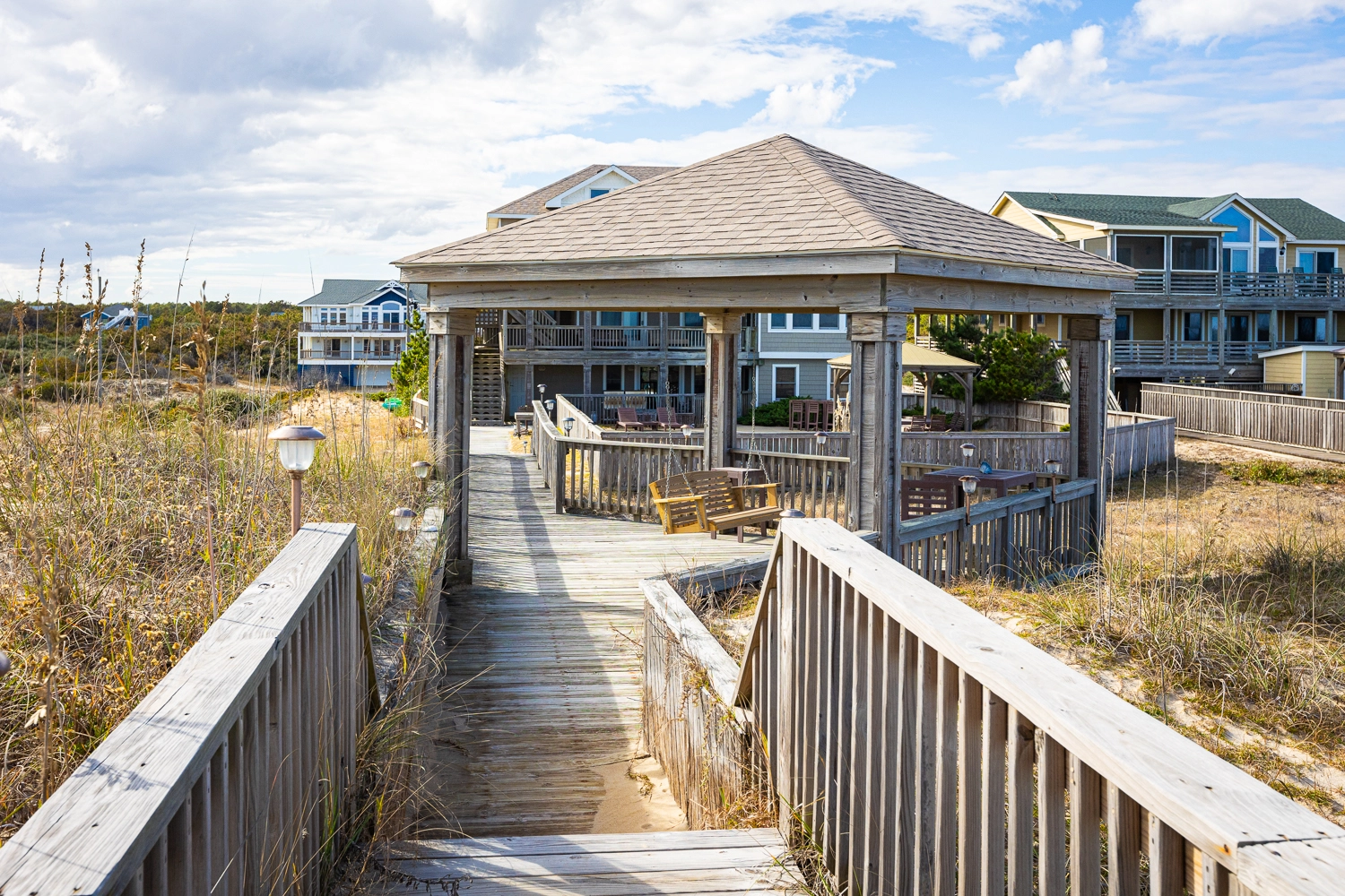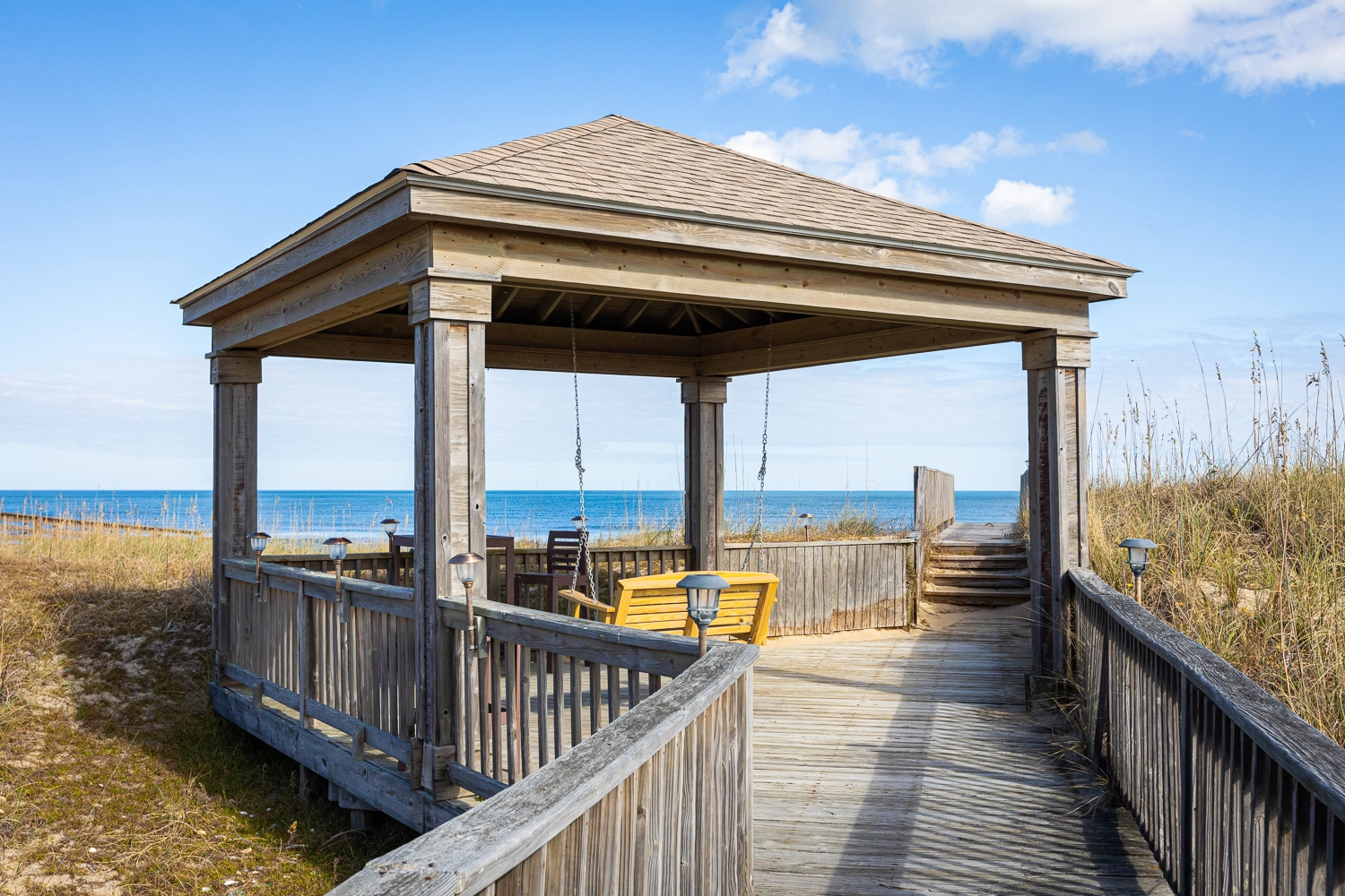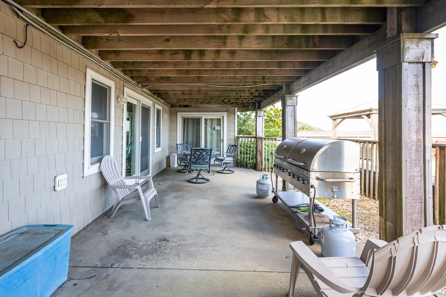 Private walkway to the beach with covered dune deck; Blackstone gas griddle.