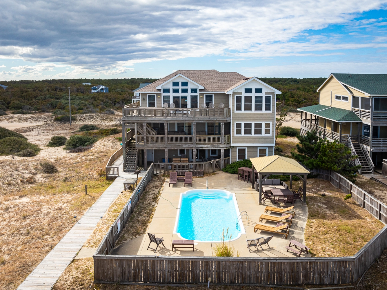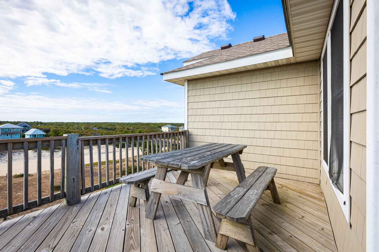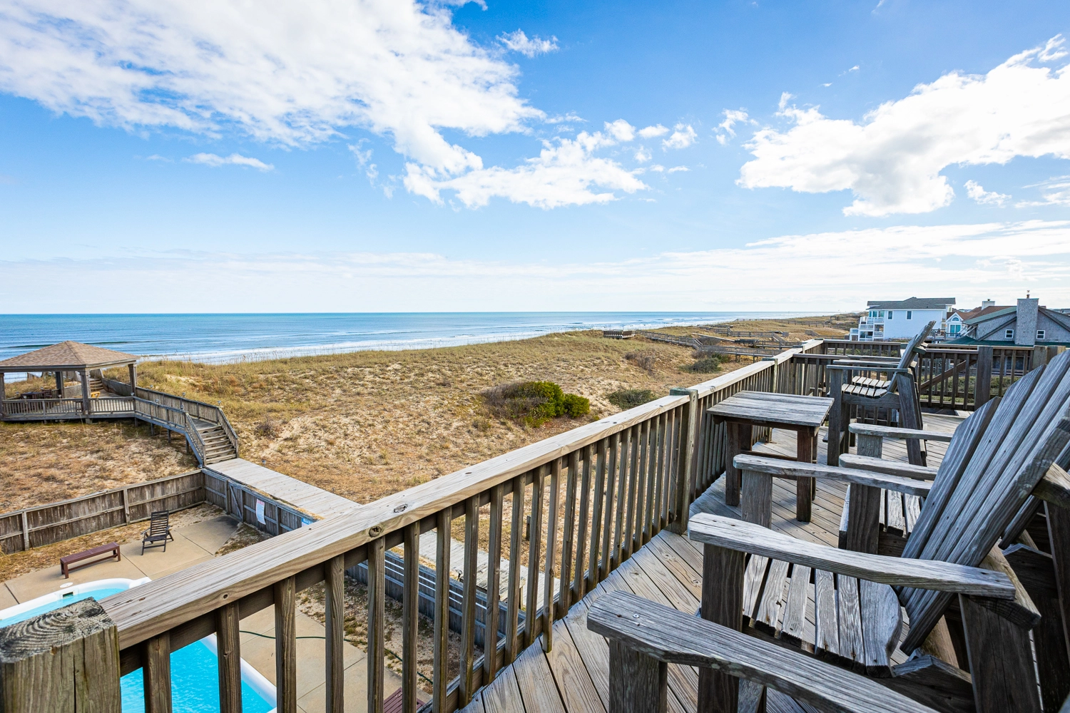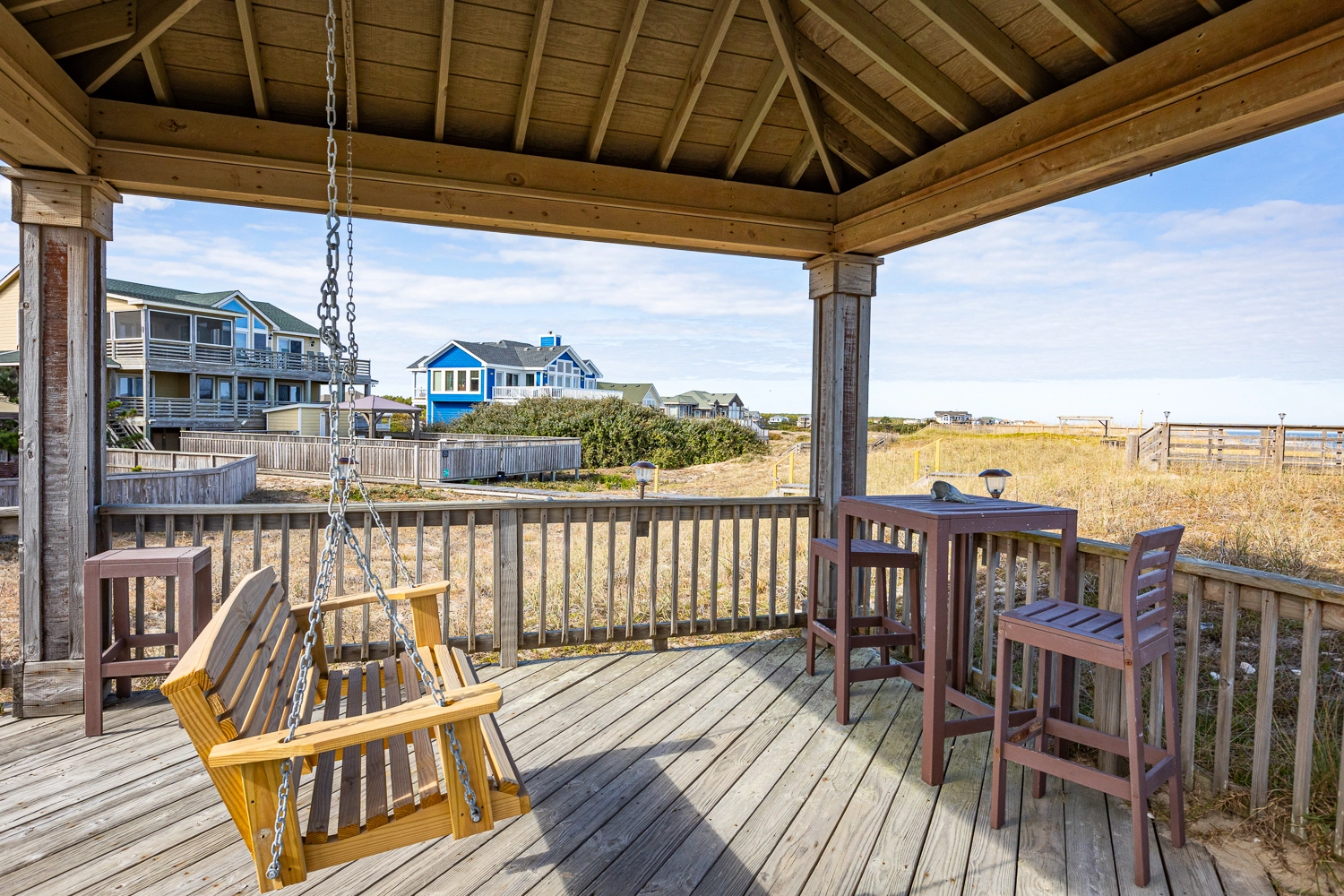 "The location was great! The horses visited every day, the walkway made it so easy to get to the beach, and the top deck was perfect for dolphin watching!"