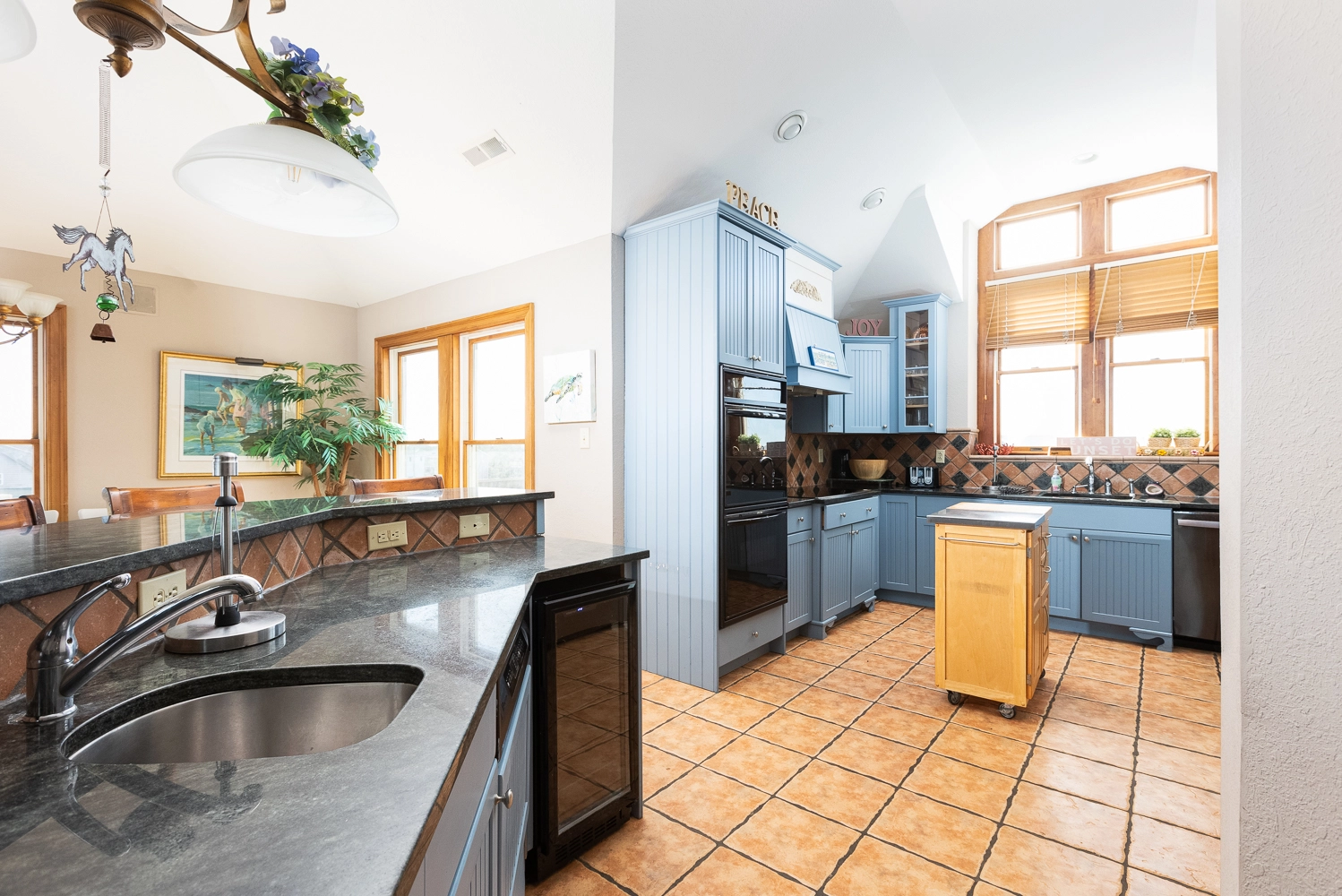 Great room; kitchen with wine cooler and two dishwashers; dining area; loft.
