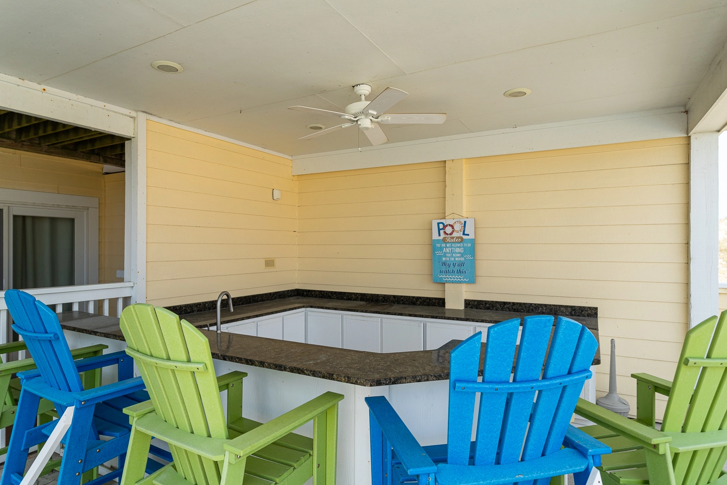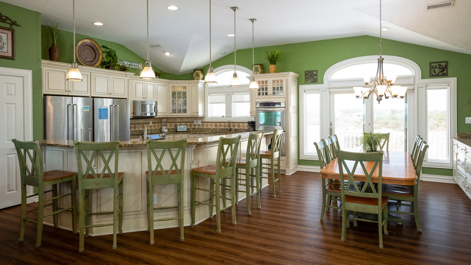 "Big decks on both sides of the house. Use-friendly kitchen. Ability for everyone to sit down and eat together in one large area rather than broken up in various locations. Pool. Outdoor grill and kitchen area. Beach access."