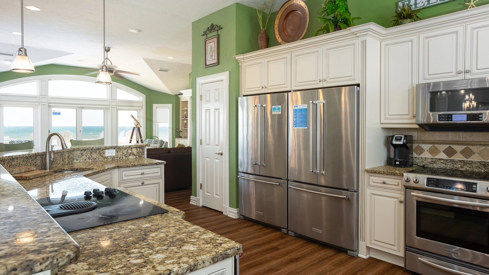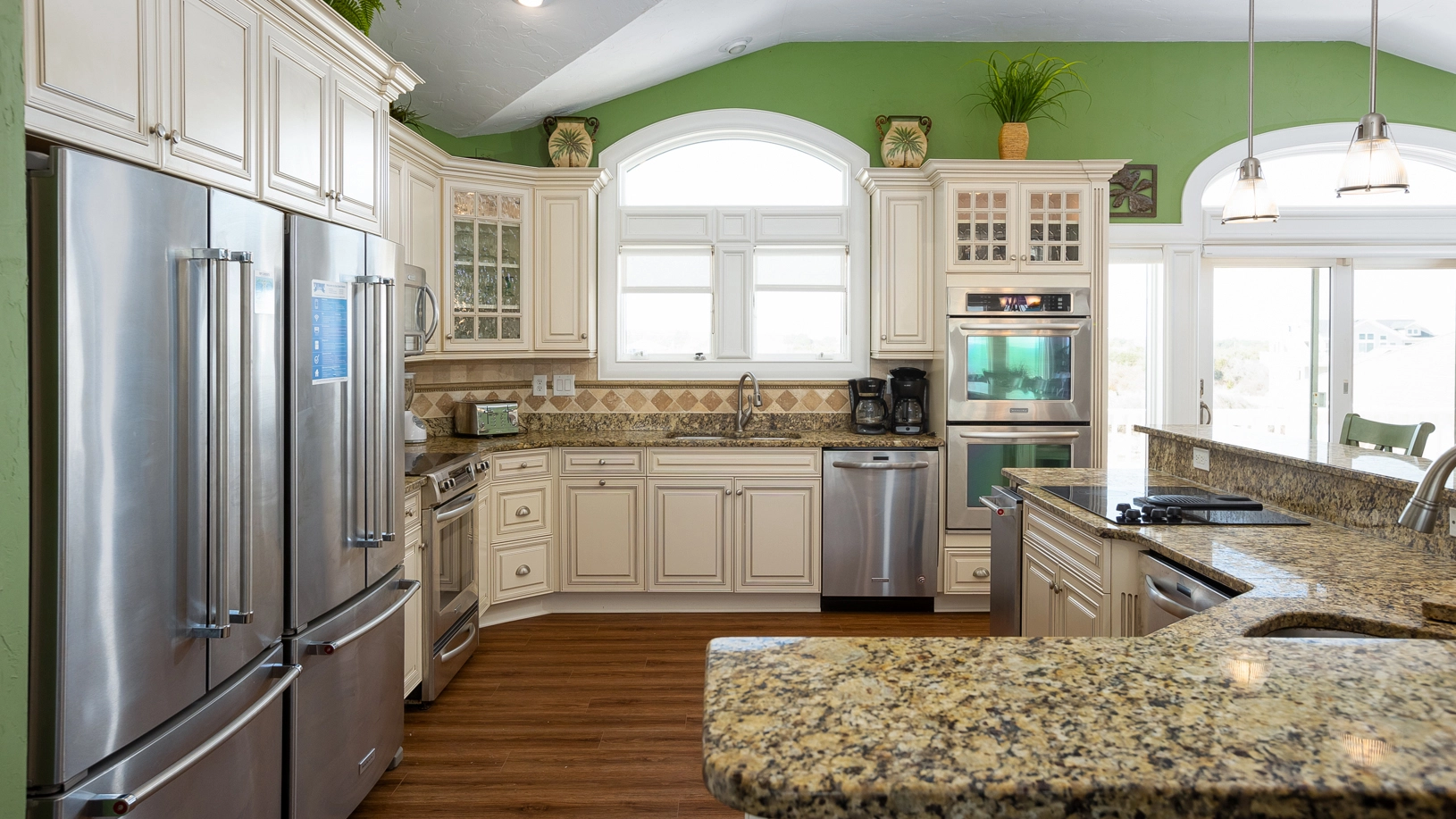 "Loved the ice maker, double fridge, freezer and dishwasher! Steps to the beach. Comfy beds!!!"