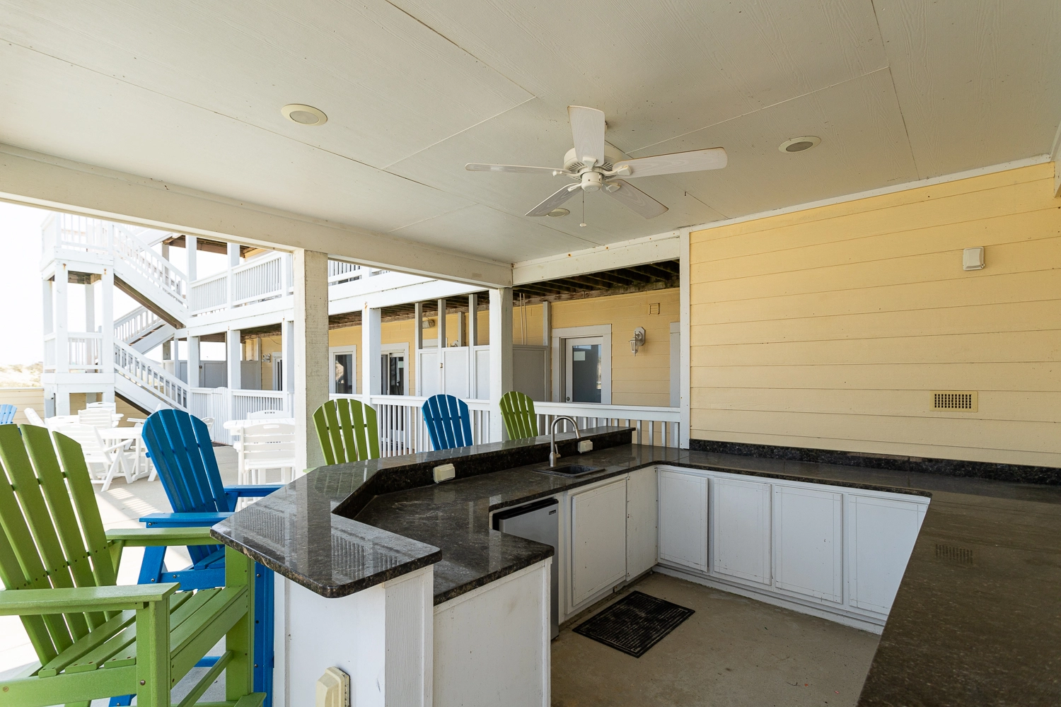 "This was the best beach house we have had the pleasure of renting. Our group numbers 16 and we had a fabulous time. There was plenty of comfortable gathering areas inside and outside the house. We especially enjoyed the "bird's nest" as we called the deck on the dune! We always have a crowd in the kitchen cooking and hanging out and there was room for all of us. The kitchen is well stocked with cooking equipment and dishes."