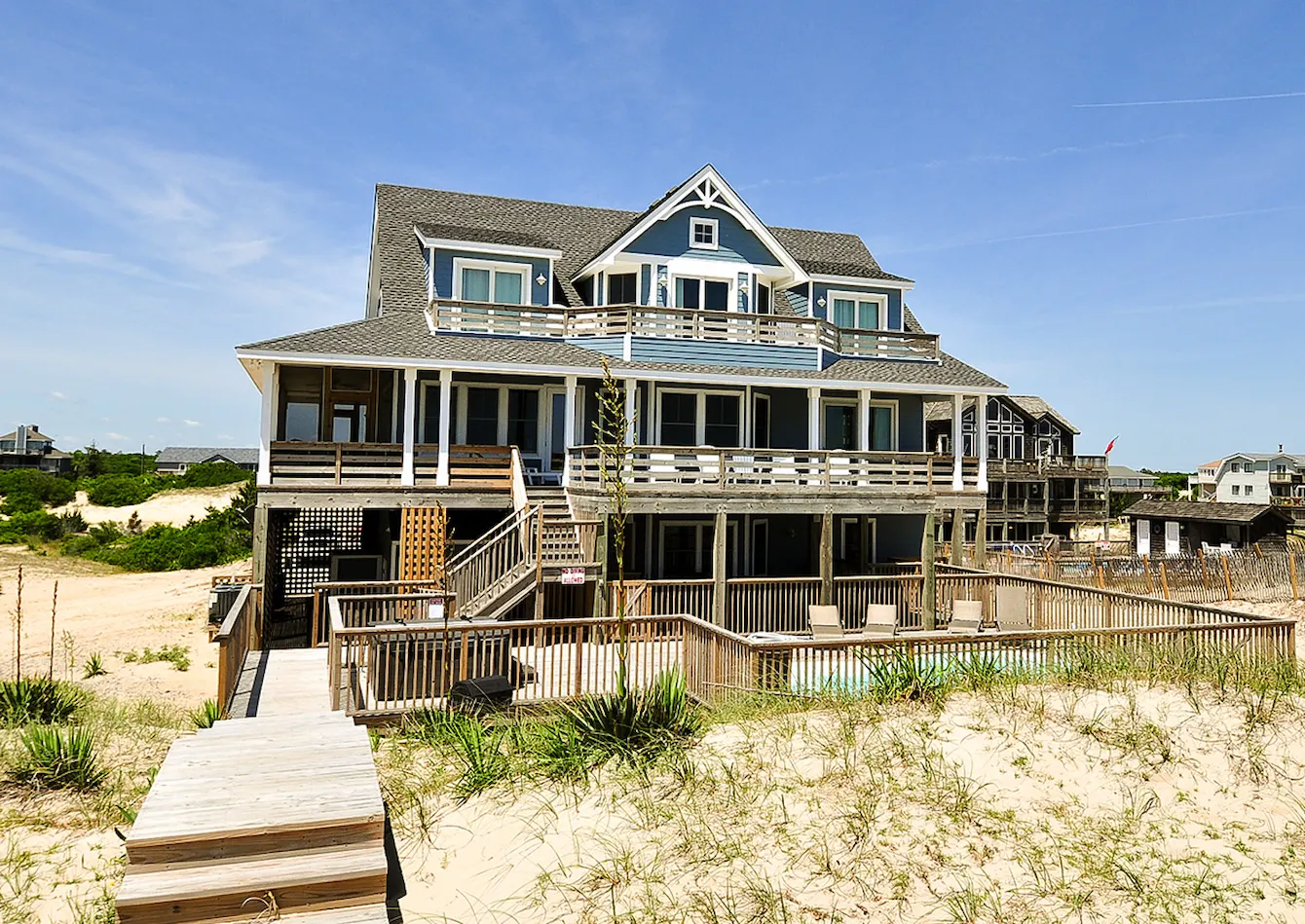 "I have been going to the Outer Banks for 25+ years and Limited Access was the most beautiful home I have rented there. It was our first time staying in Carova and it was an incredible trip. The house is beautifully decorated with open floor plan on the middle floor and fully stocked kitchen. The upstairs common area was a relaxing place to hang out and step outside to see the ocean. We may have just gotten lucky but we saw horses every day we were there. The horses liked to hang out under the house to avoid the sun and often ran over the dunes right next to the pool. One young couple we were with stayed in the guest house but it would be a quiet place for a couple with a toddler or older couple. In summary - my expectations were high based on the pictures but the actual experience blew those expectations out of the water. You will not regret renting this gorgeous home in beautiful the beach town of Carova."