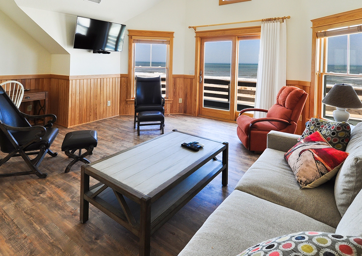 "We enjoyed the layout of the home. With the kitchen and living room on the middle level we didn’t have to go up and down stairs all day. The living room upstairs was a great addition and allowed for privacy for the two upstairs bedrooms if desired. The separate garage suite was perfect for family who wanted to be close and involved but wanted more peace and quiet at night. Overall, this was our favorite house layout in all the years we’ve been visiting OBX."