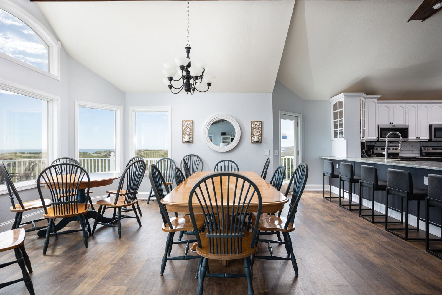"Beautiful views, awesome layout. Was plenty of space for our large group of 20+ people. The bar was amazing, the ice maker was a dream come true after vacationing in Carova for many years. The kitchen had every gadget you could need. It was pretty clean too for a rental home. We had a few maintenance issues, but we always do, it's par for the course. We plan to re-book this home again. Everyone was happy. And it's almost like the walls are better insulated that in other homes, nobody was bothered by anyone else."