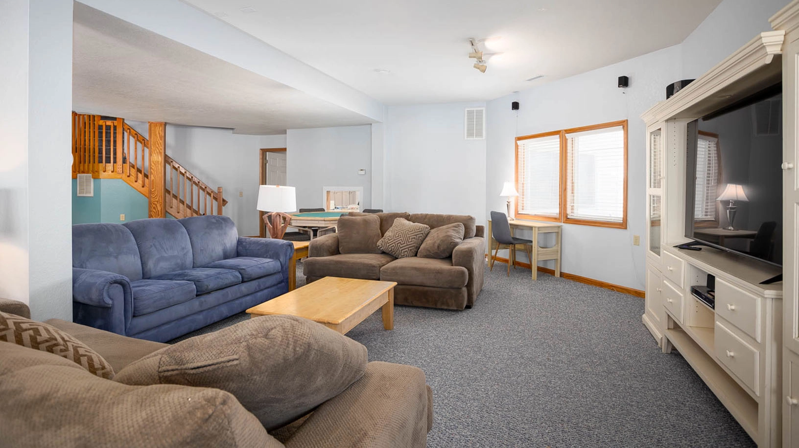 "My family had a wonderful time staying at TheState of Mind! What a beautiful spacious home. The kitchen was fully stocked with everything we needed. (crockpot, Keurig and regular coffee pot, griddle, waffle maker, blender, lots of pots and pans). We would definitely stay here again. It was very clean and welcoming. Everyone had so much fun downstairs playing pool and other games in the evening. We even had a ping pong competition. The bedrooms were roomy and the beds were very comfortable. The young ones and teenagers loved their own area to hang out and sleep. Having enough room for our children and their families, along with my father all together was a very special treat!"