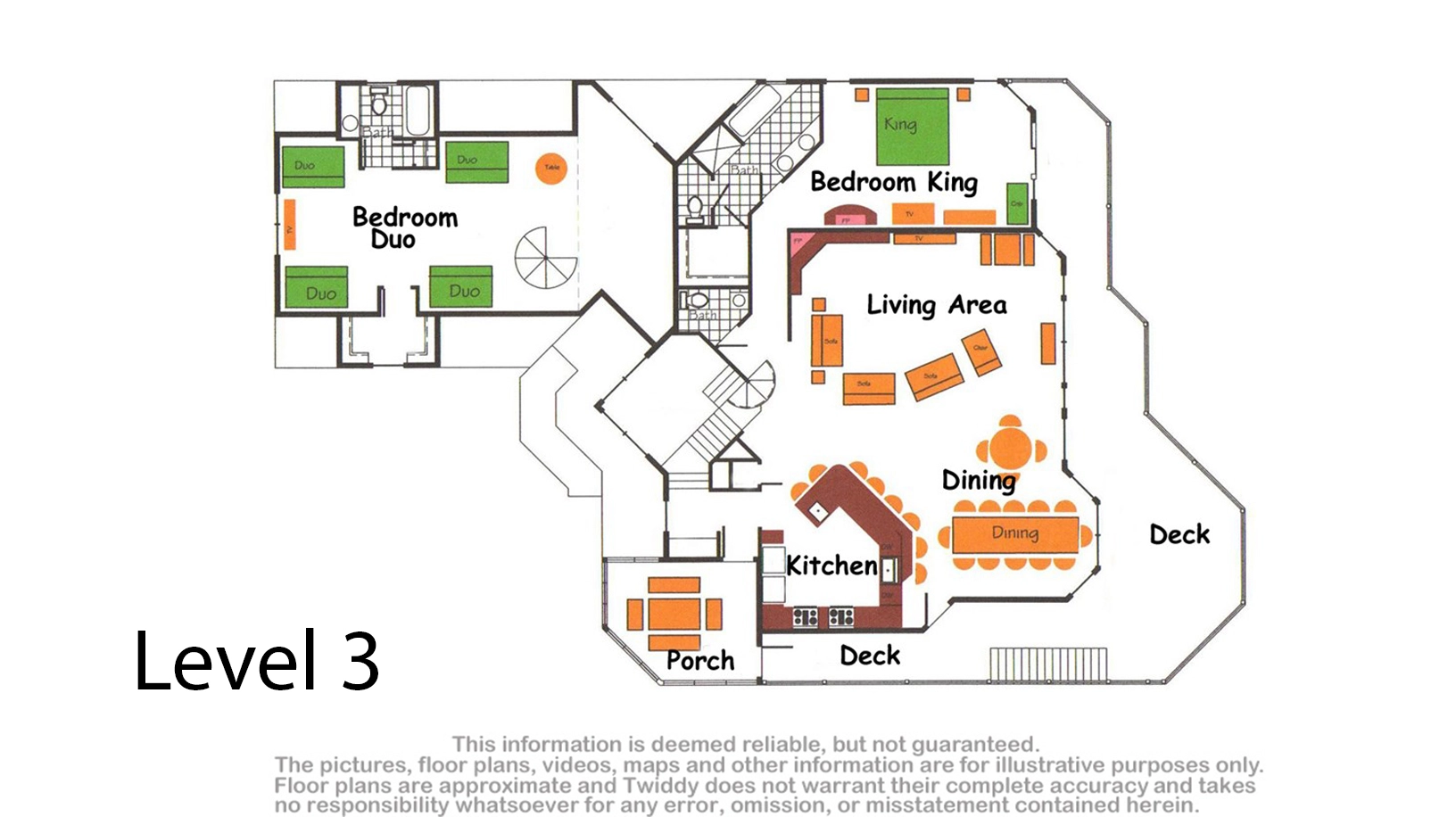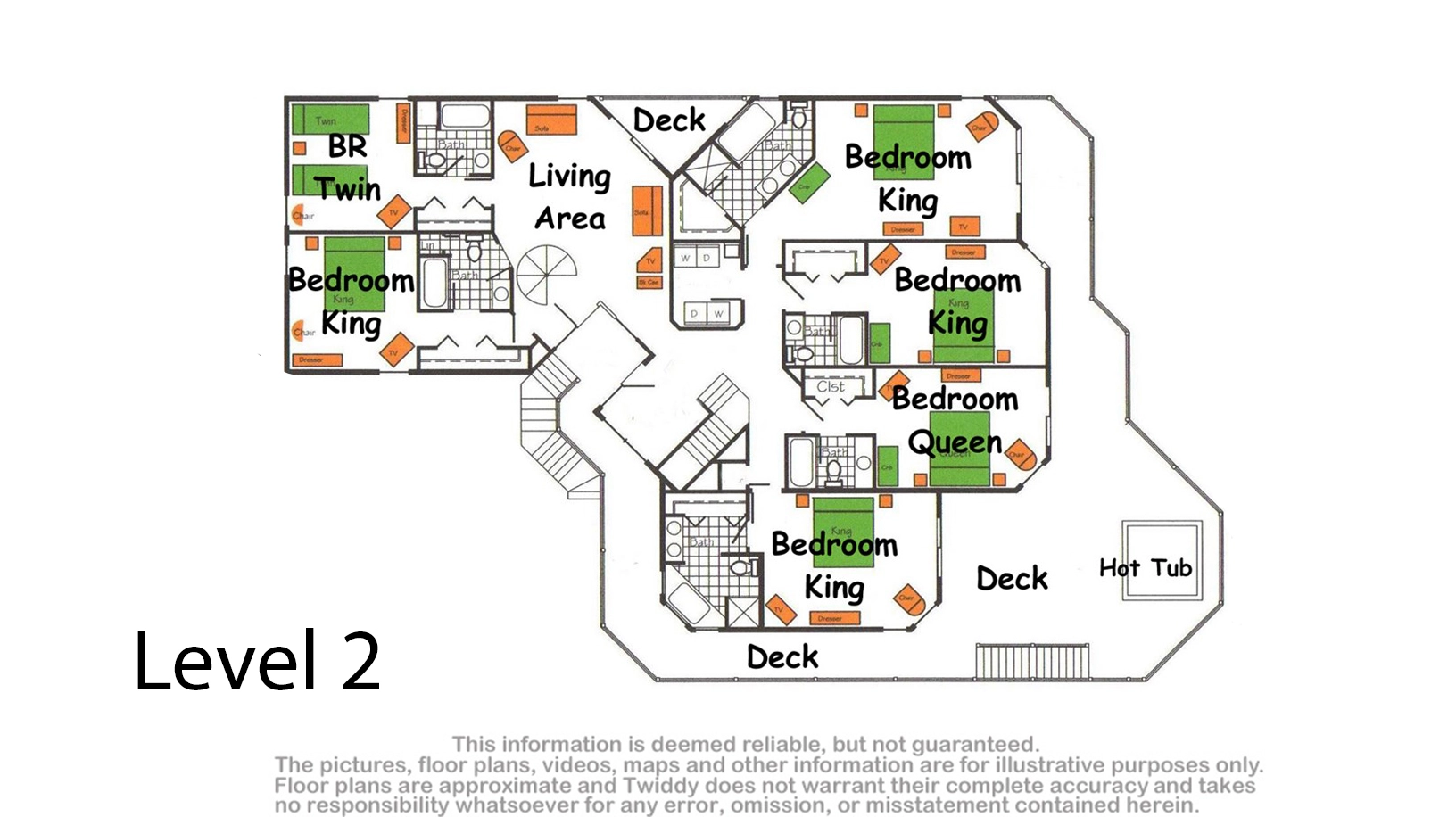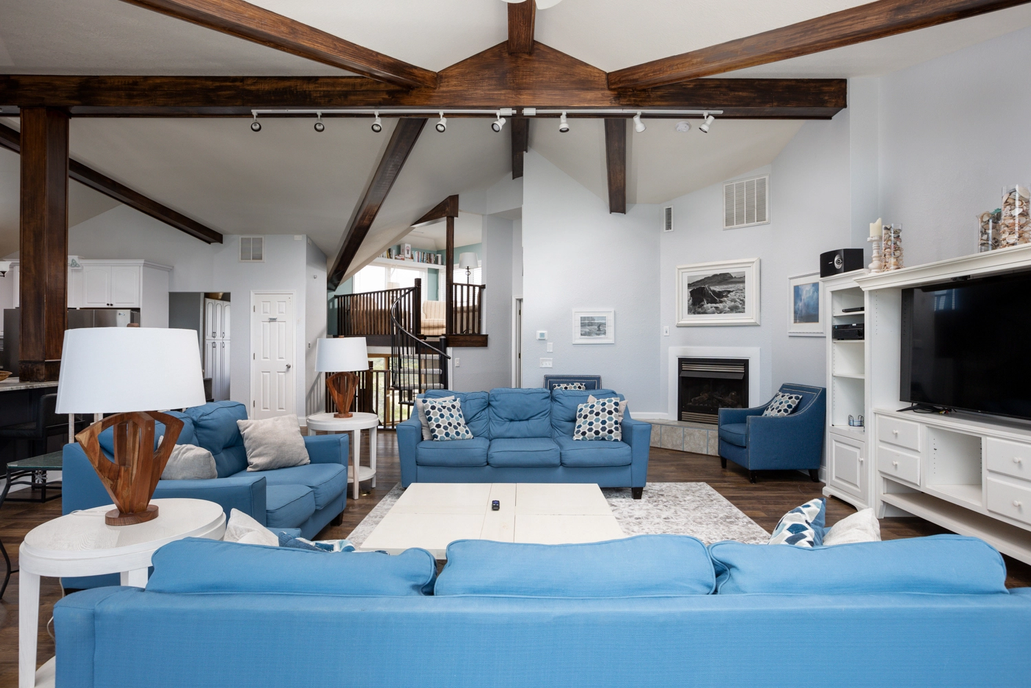 Double laundry; living/gaming room; covered decks.