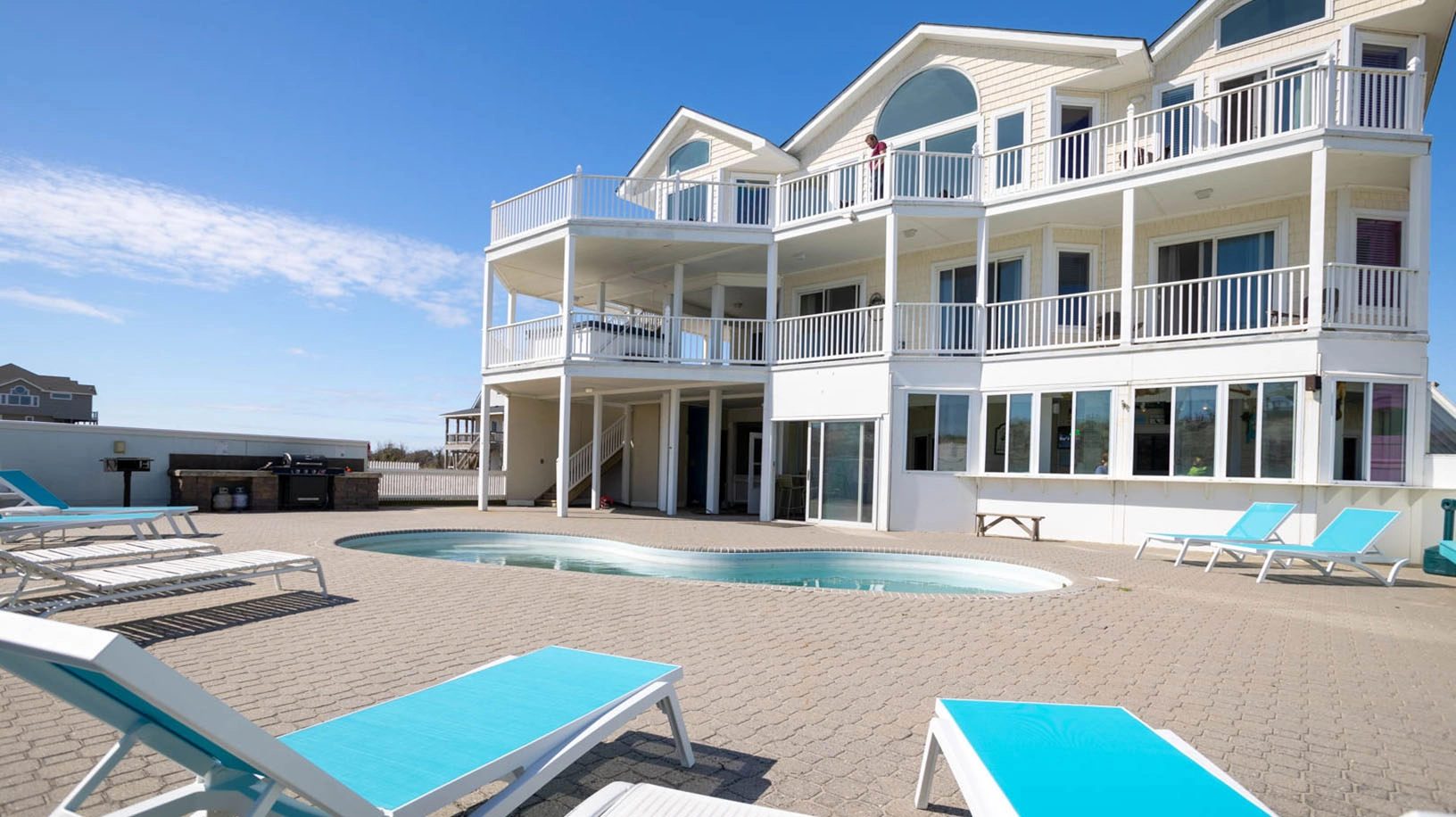 "Been to the home several times. Fits our family very well. All adults get ocean facing rooms and the upstairs bunk room is great for kids. The whole first floor is dedicated to recreation which is great for not so great weather days. Like that the hot tub is now in the pool area. Frees up the second floor deck which is very nice and shady with cool breeze. Like the indoor/outdoor bar area. The blue tooth speaker is a great addition."