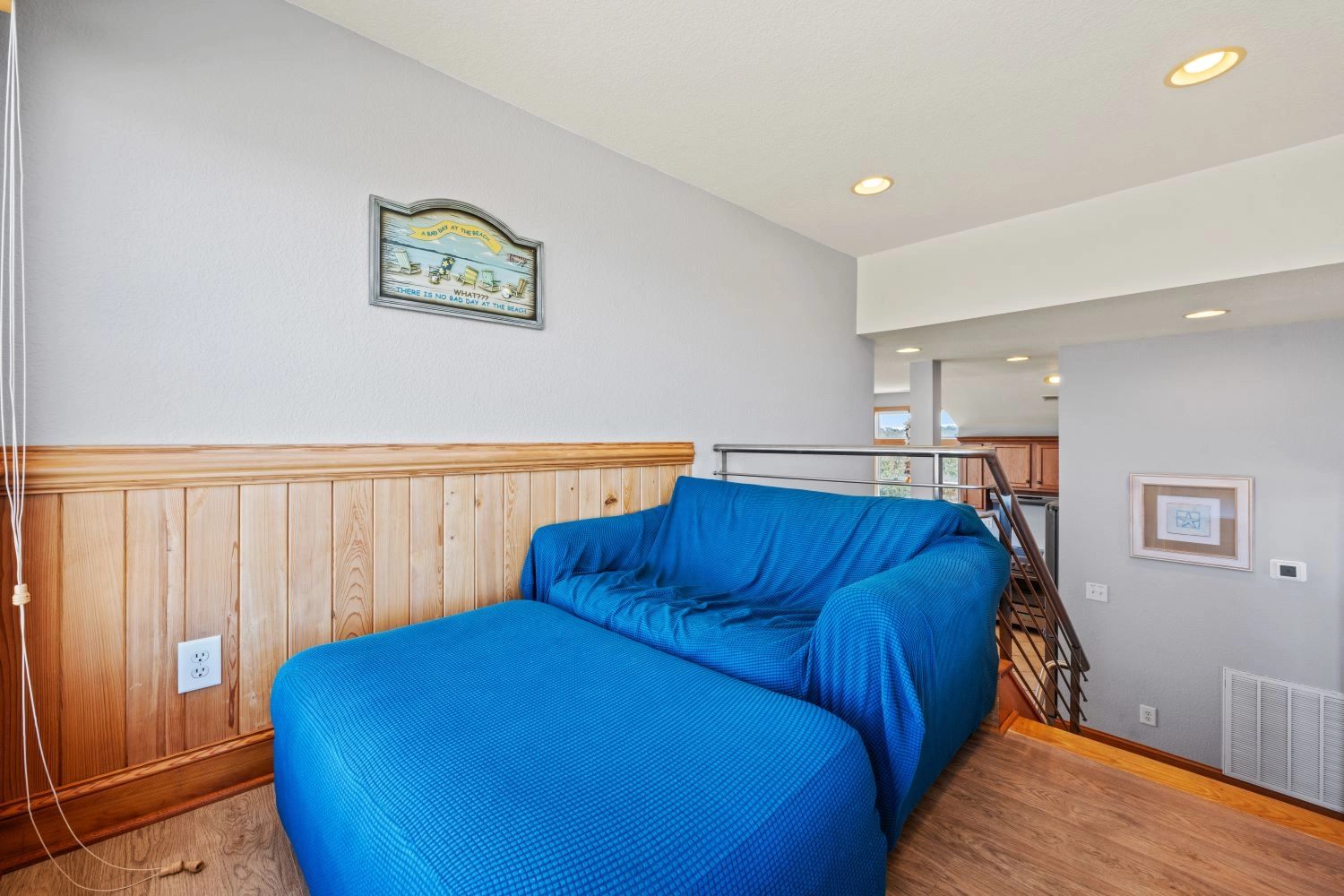Loft with a seating area.