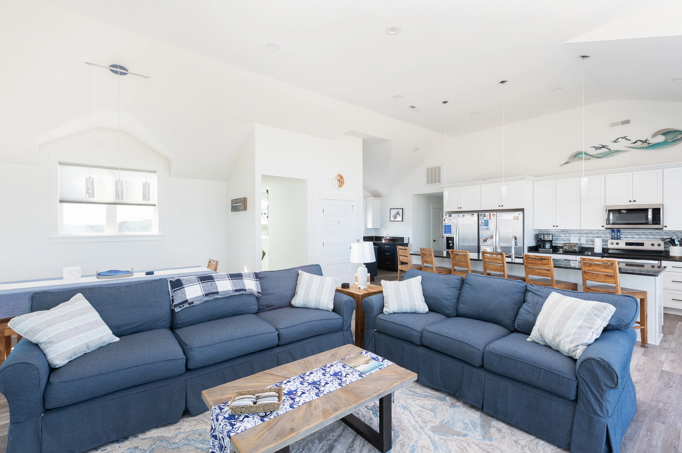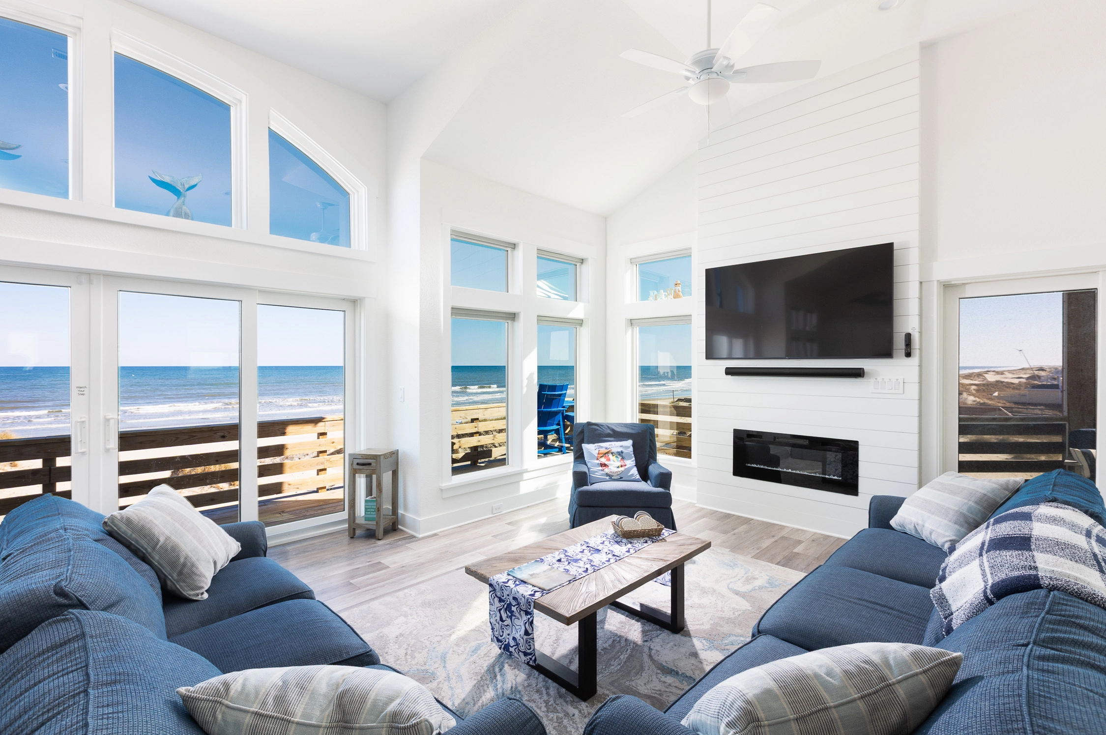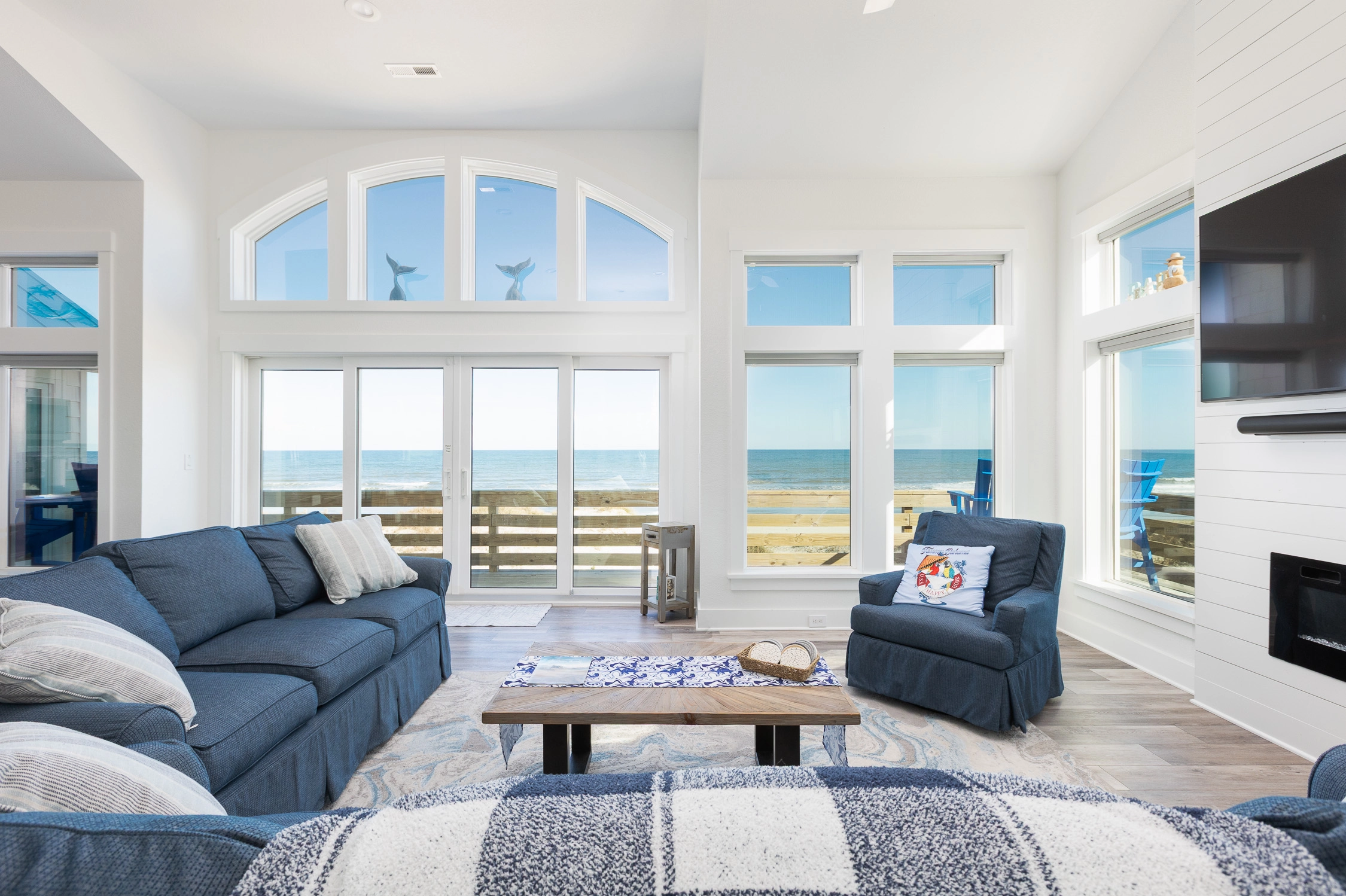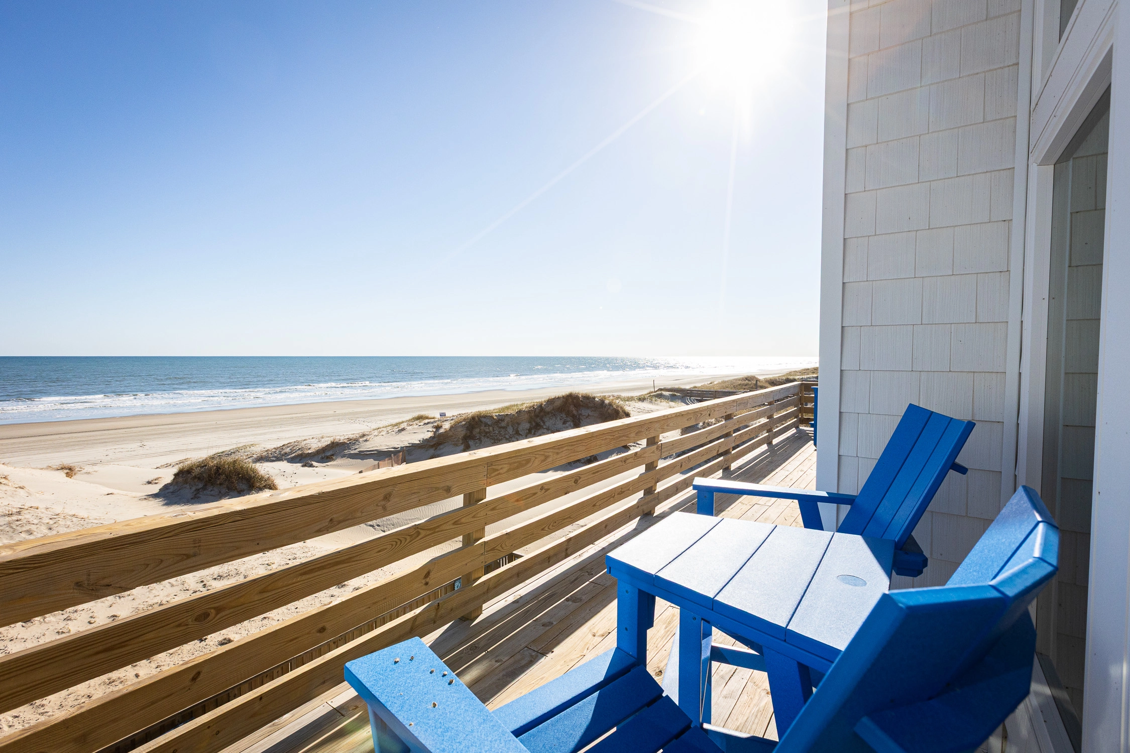 "Outta the Blue excels in “the little things.” My family and I have been coming to OBX for YEARS, and this is the most well-stocked kitchen in any house we’ve stayed at. From the NutriBullet down to the custom coffee mugs and tumblers, trust you’ll have everything you need. Every light switch was labeled, too! You can tell the owners really care about their guests’ experience and it definitely makes a difference! Above all, despite our rainy and windy week at the beach, the view was sublime. Highly recommend to anyone thinking about booking!"