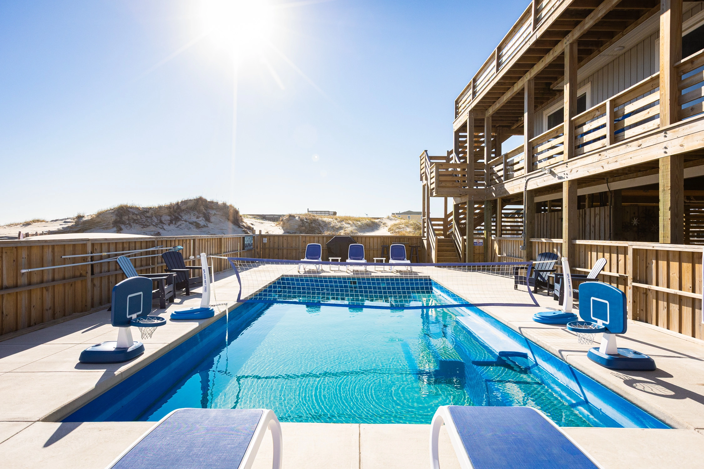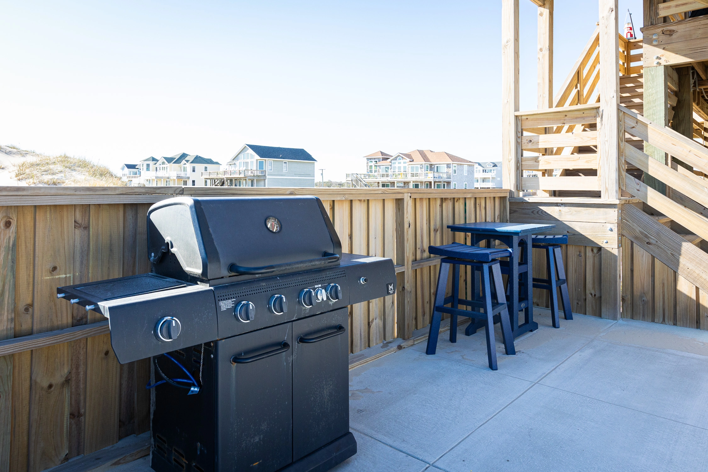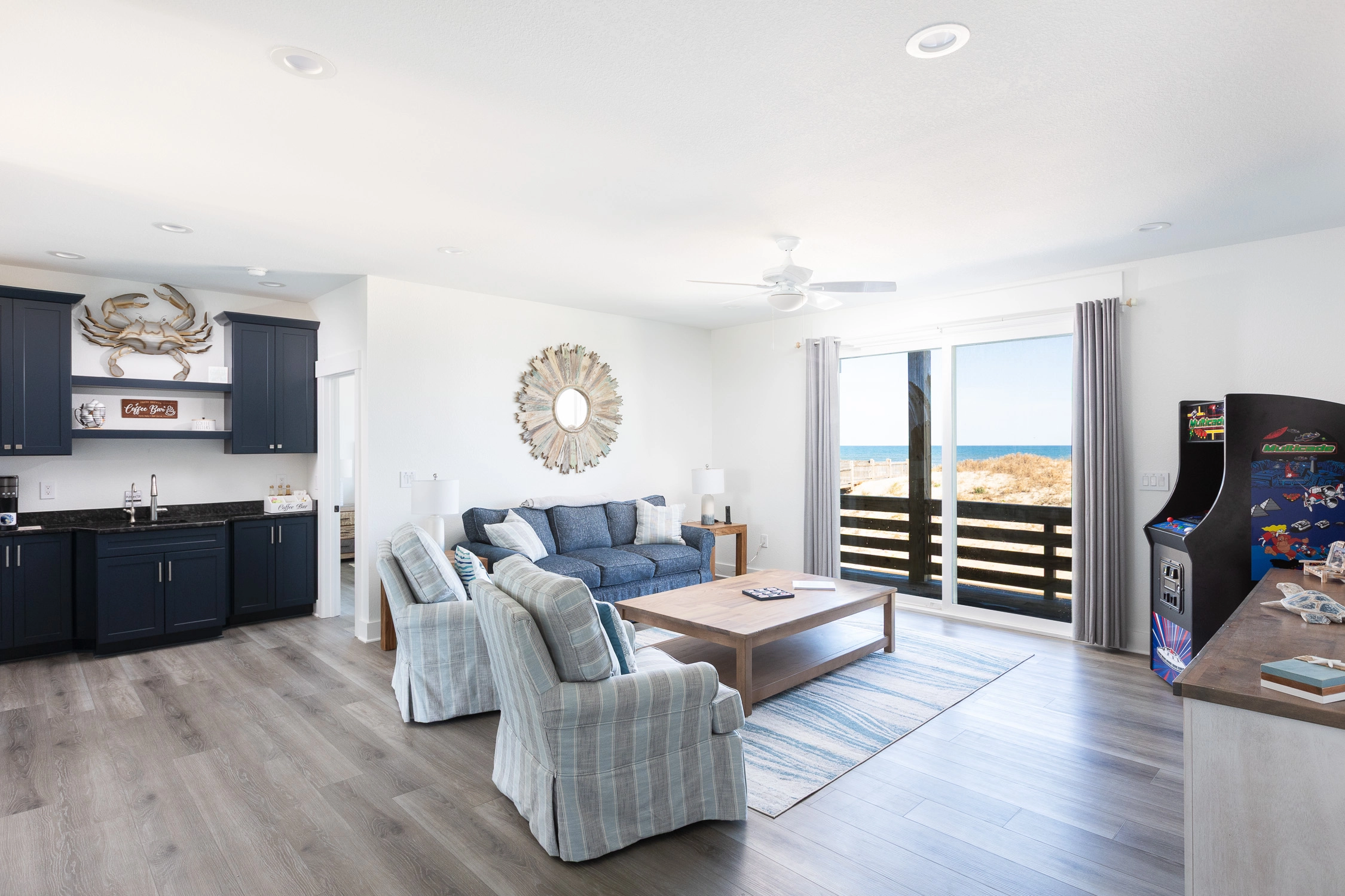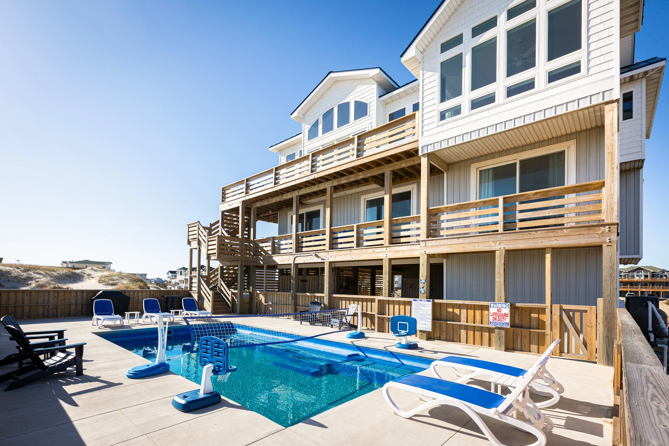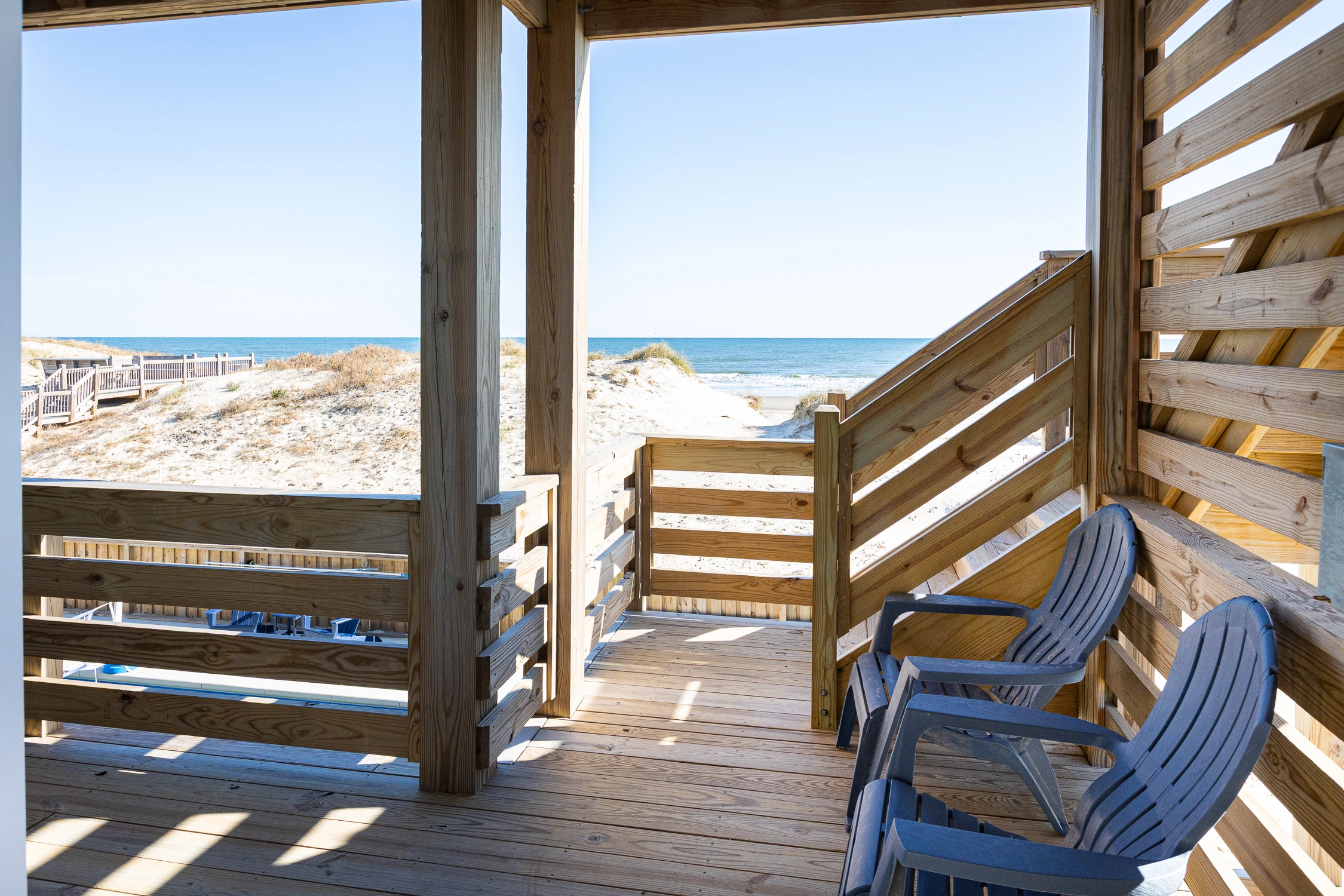 "Outta the Blue excels in “the little things.” My family and I have been coming to OBX for YEARS, and this is the most well-stocked kitchen in any house we’ve stayed at. From the NutriBullet down to the custom coffee mugs and tumblers, trust you’ll have everything you need. Every light switch was labeled, too! You can tell the owners really care about their guests’ experience and it definitely makes a difference! Above all, despite our rainy and windy week at the beach, the view was sublime. Highly recommend to anyone thinking about booking!"