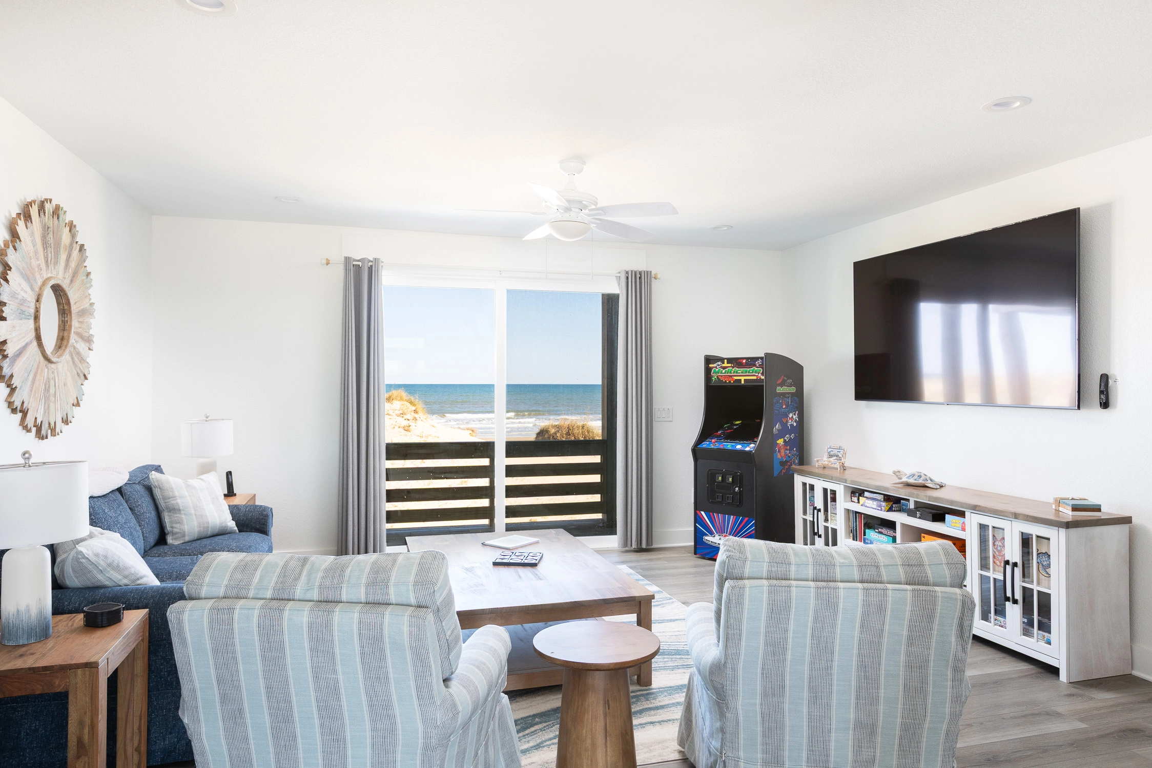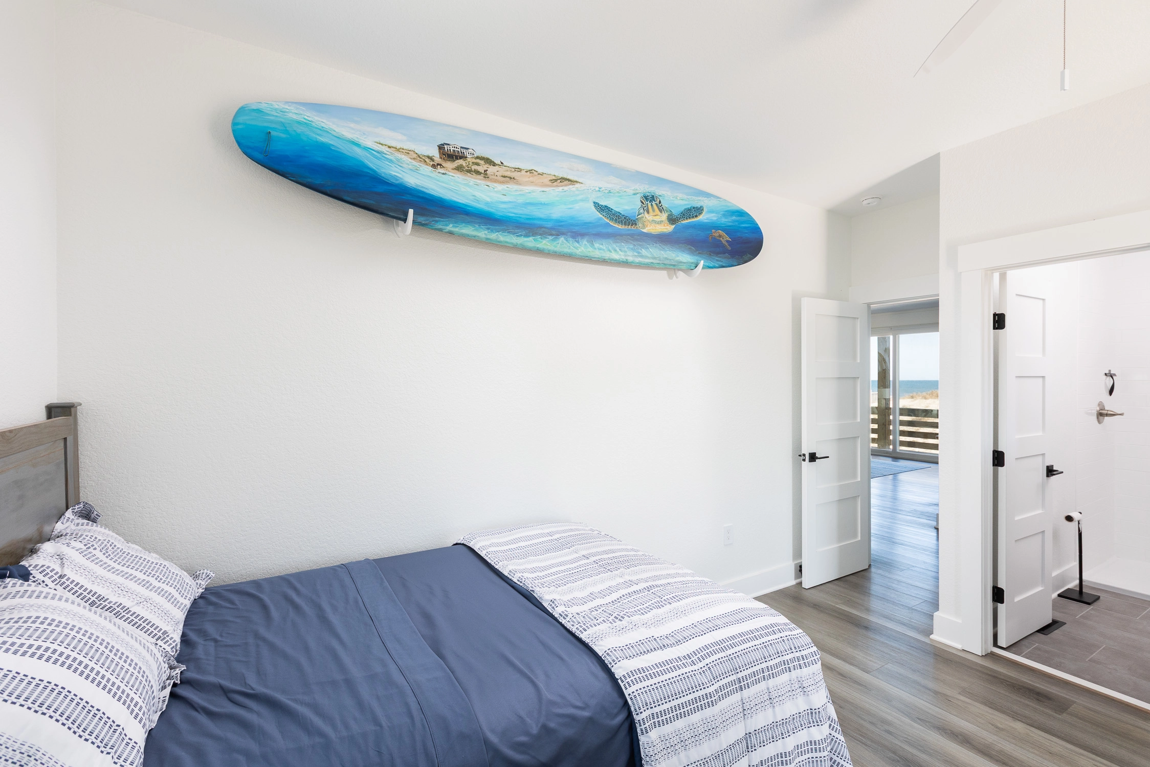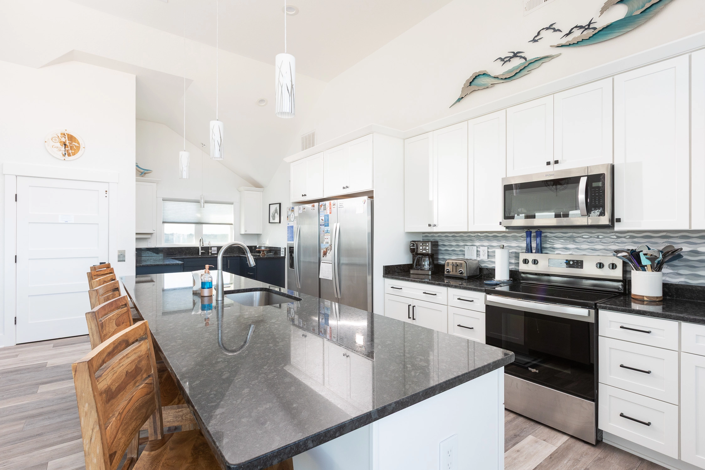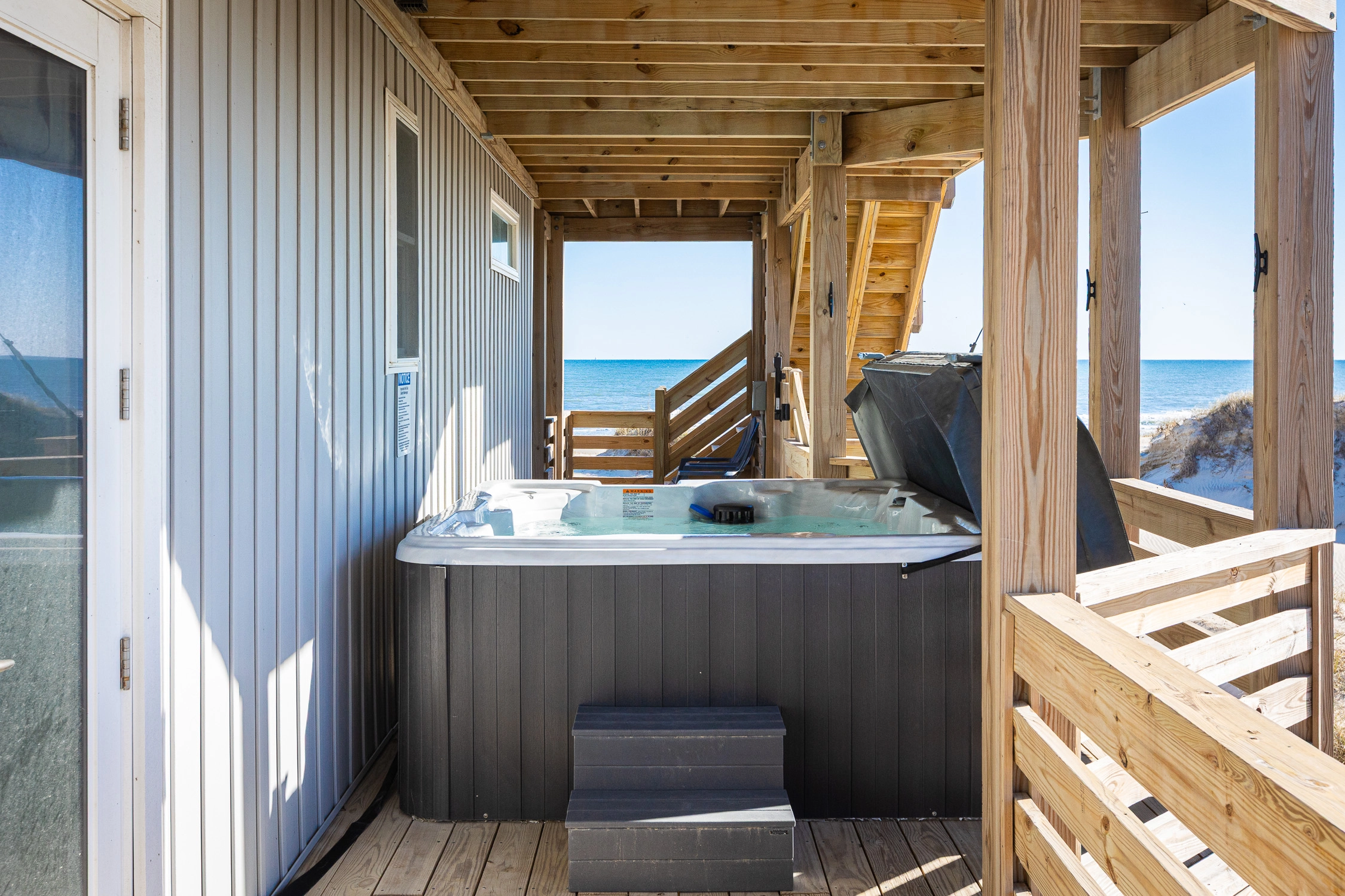 "Outta the Blue excels in “the little things.” My family and I have been coming to OBX for YEARS, and this is the most well-stocked kitchen in any house we’ve stayed at. From the NutriBullet down to the custom coffee mugs and tumblers, trust you’ll have everything you need. Every light switch was labeled, too! You can tell the owners really care about their guests’ experience and it definitely makes a difference! Above all, despite our rainy and windy week at the beach, the view was sublime. Highly recommend to anyone thinking about booking!"