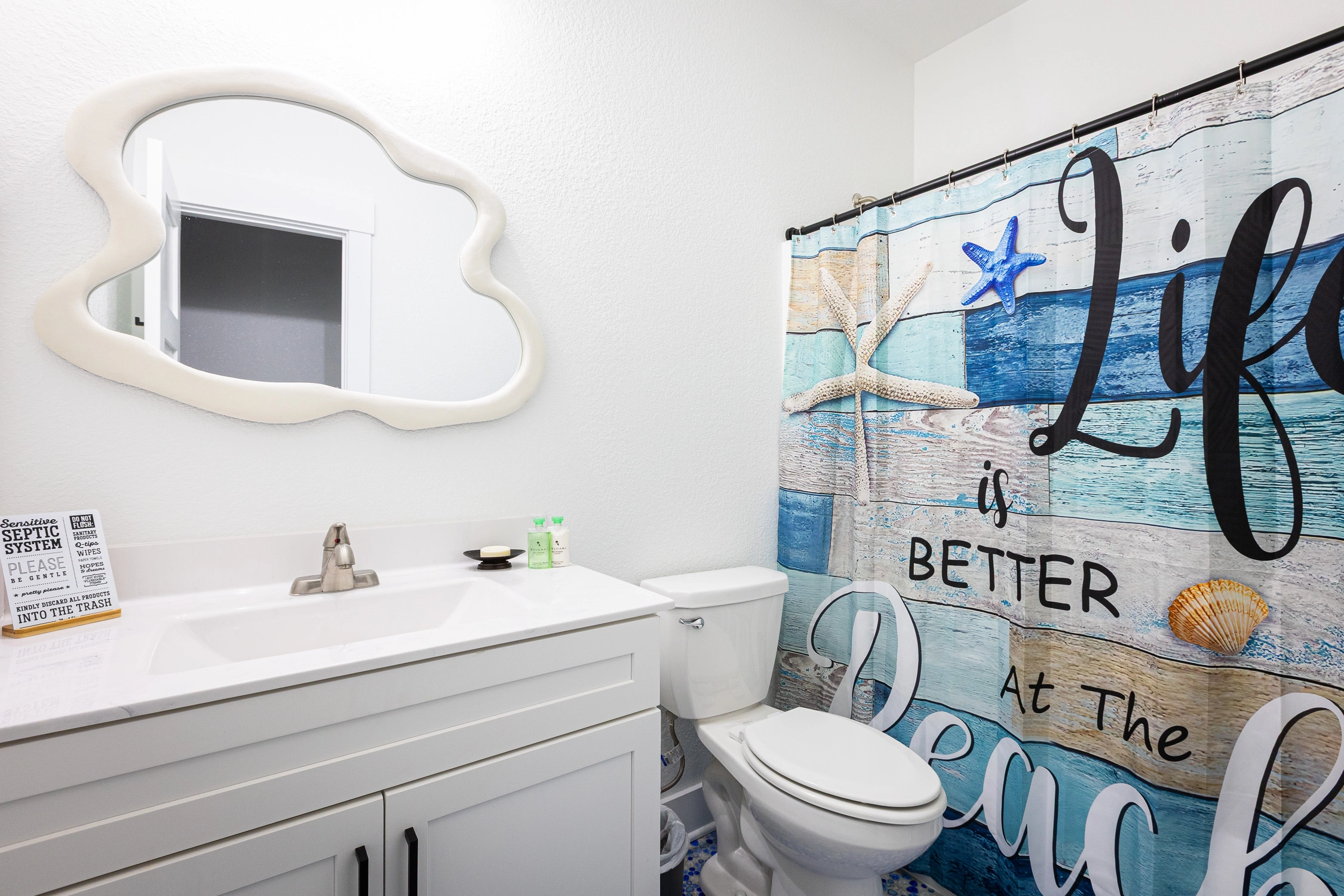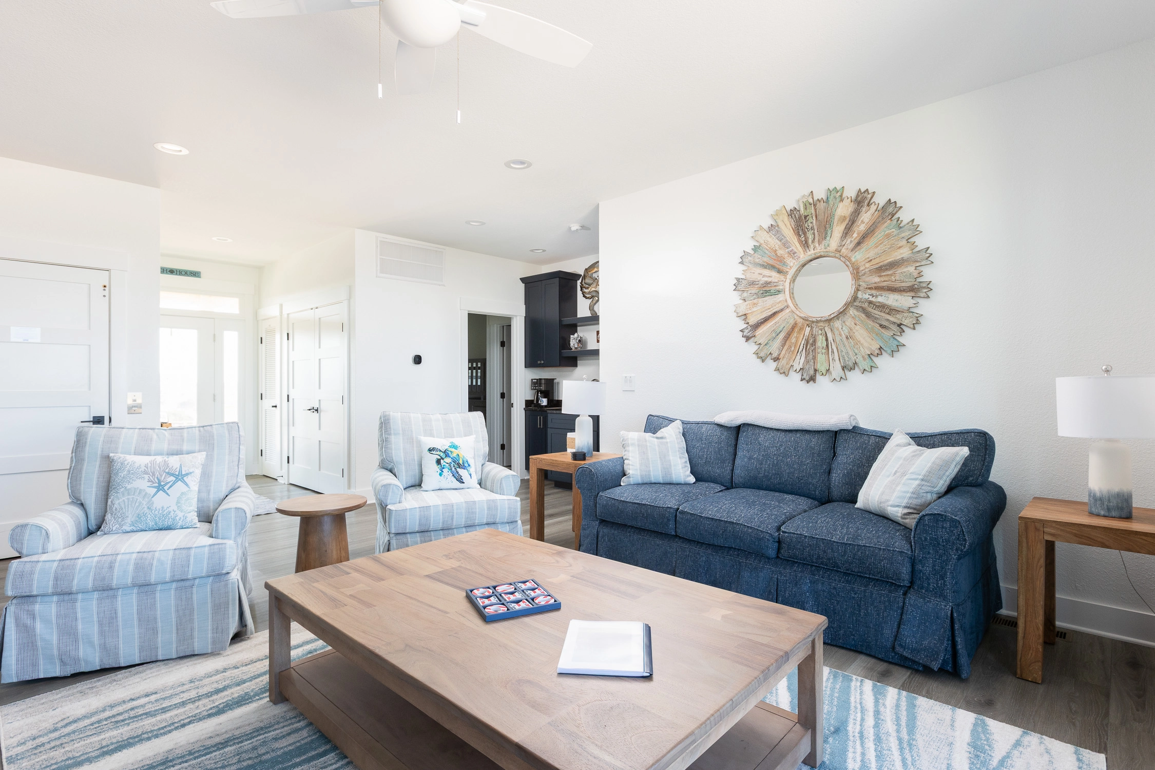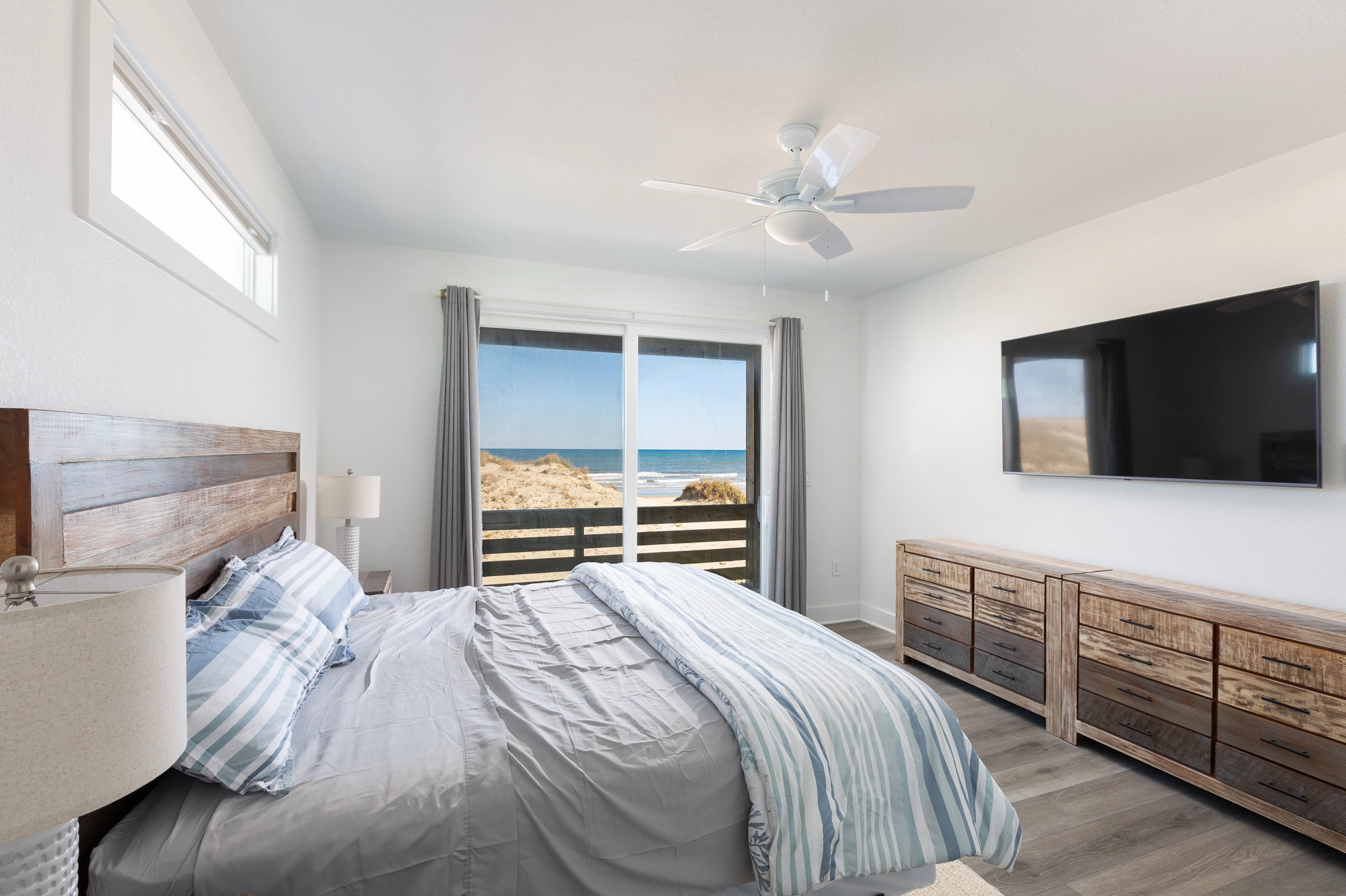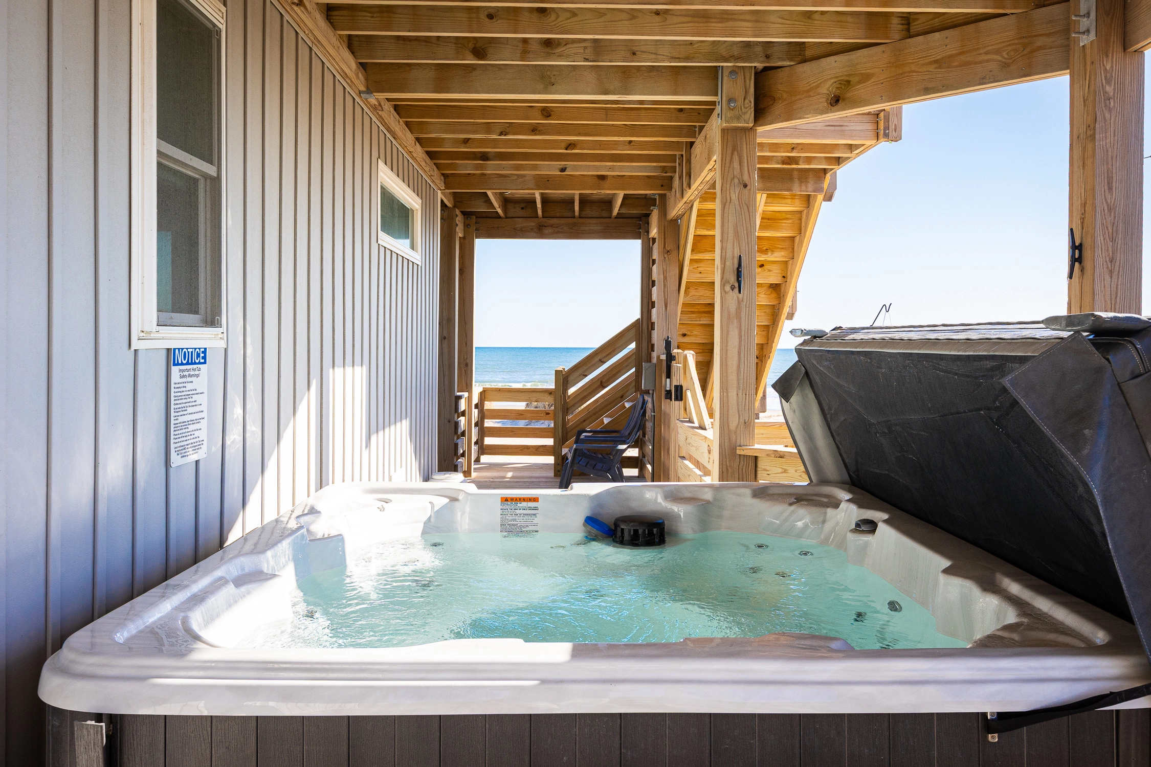 "Outta the Blue excels in “the little things.” My family and I have been coming to OBX for YEARS, and this is the most well-stocked kitchen in any house we’ve stayed at. From the NutriBullet down to the custom coffee mugs and tumblers, trust you’ll have everything you need. Every light switch was labeled, too! You can tell the owners really care about their guests’ experience and it definitely makes a difference! Above all, despite our rainy and windy week at the beach, the view was sublime. Highly recommend to anyone thinking about booking!"
