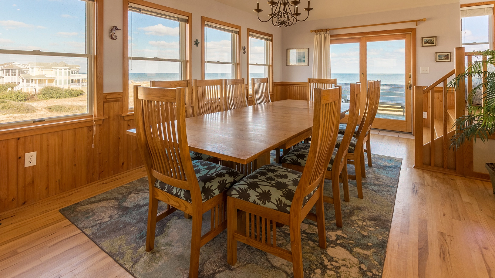 "Just as the name says. Paradise, you feel it when you get to the house. The amazing views from not only the top floor but the second floor as well(even the two bottom floor rooms can see the ocean and watch the sun come up over the horizon). The house has a well laid out floor plan for the amount of guests it can hold. Three couples were able to vacation when we stayed so the house felt very big. It was needed because our week long stay was rain almost every day. We had a one year old and having rented a baby gate it was needed since he could walk, keep that in mind if your child/children require it. The walk to the beach is shorter than what the pictures lead you to believe which is nice. Twiddy was also a big help with taking care of the little things we needed throughout the week. Everything was taken care of that day within a few hours. The drive to the house on the beach is fun but factor in that it takes 45 minutes to get to from blacktop to the rental. Like someone else stated better suited for children 5 and up since the built in benches in the deck rail are a safety concern. Also the two couches on the top floor are against the railing for the opening that can see down to the second floor. Small children playing on the couches would be the biggest concern. All in all everyone was happy with the house and we are all happy to stay there again in the future."