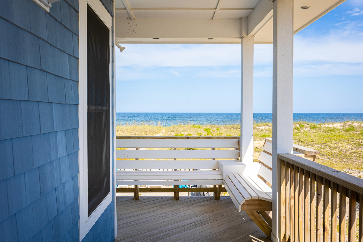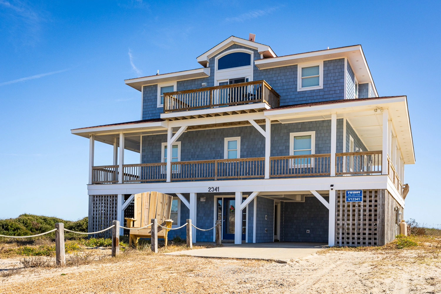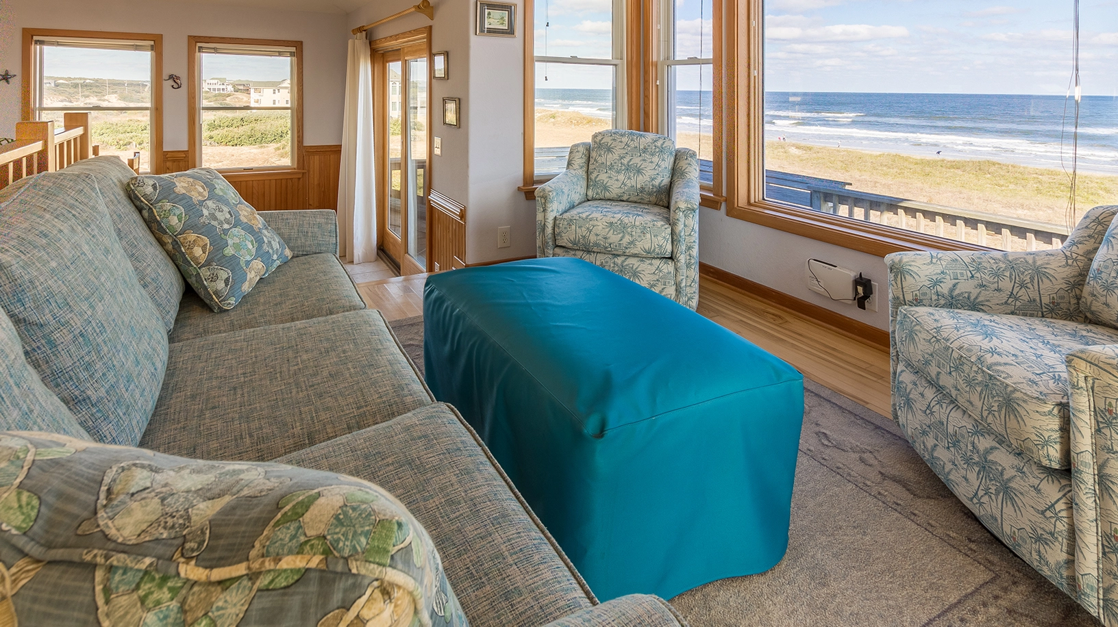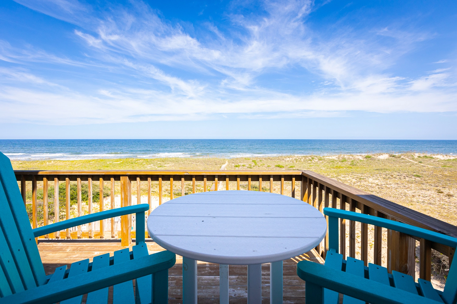 "Spectacular oceanfront views from the unique “ship watch” area of the upper floor. Nicely equipped, new refrigerator. Spacious bedrooms and second kitchenette on first level that provides additional cooler capacity. Wild horses are a daily visitor. Location near NC/VA border means sparsely occupied beach great for setting up your “ beach camp” to enjoy before..or after..your dip in the private pool. Definitely requires 4x4 vehicle."